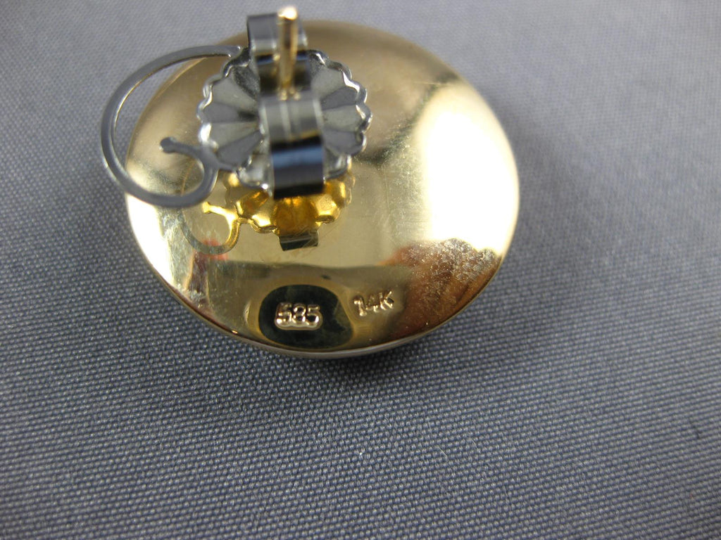 ESTATE LARGE 1.10CT DIAMOND & AAA BLACK ENAMEL 14K 2 TONE GOLD CIRCULAR EARRINGS