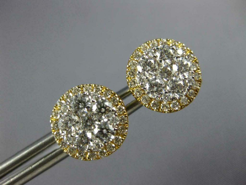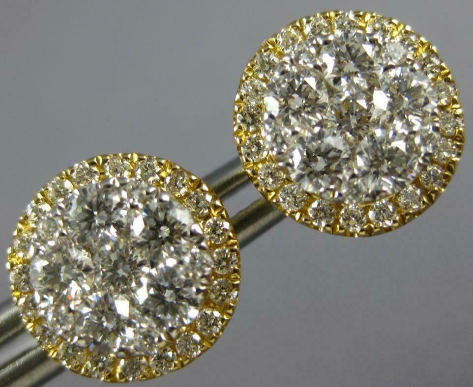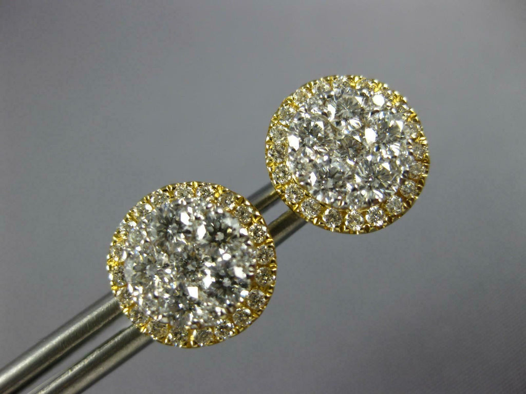 ESTATE LARGE 1.13CT DIAMOND 18K YELLOW GOLD 3D CLUSTER FLOWER HALO STUD EARRINGS