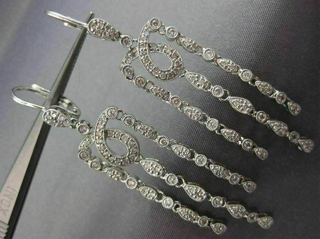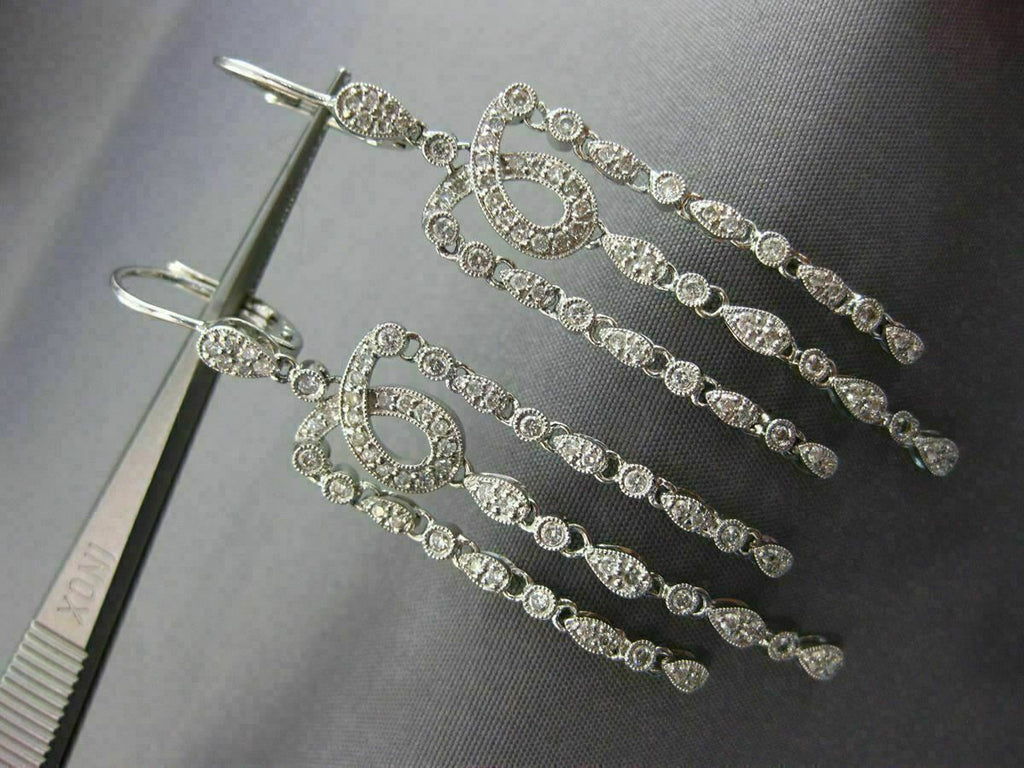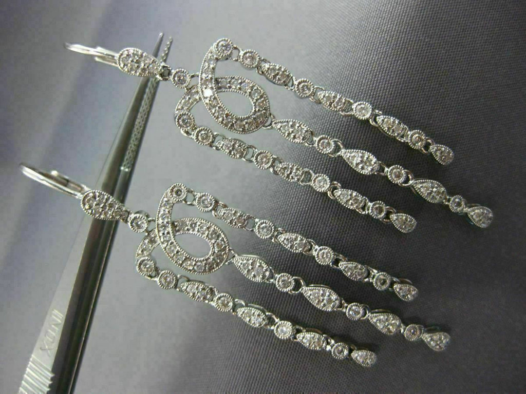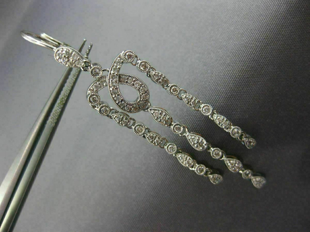 ESTATE LARGE 18KT WHITE GOLD LEVRBACK HANGING EARRINGS. 3D INFINITY MILGRAIN DESIGN. DIAMONDS ARE F/G COLOR, VSSI CLARITY 1.13 CARATS. MEASURES 62mm X 12mm. WRITTEN APPRAISAL AVAILABLE. COMES IN A PRESENTABLE GIFT BOX