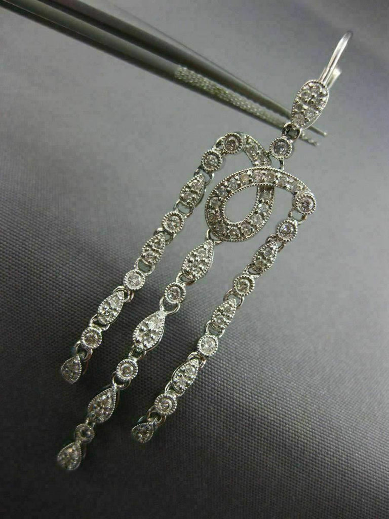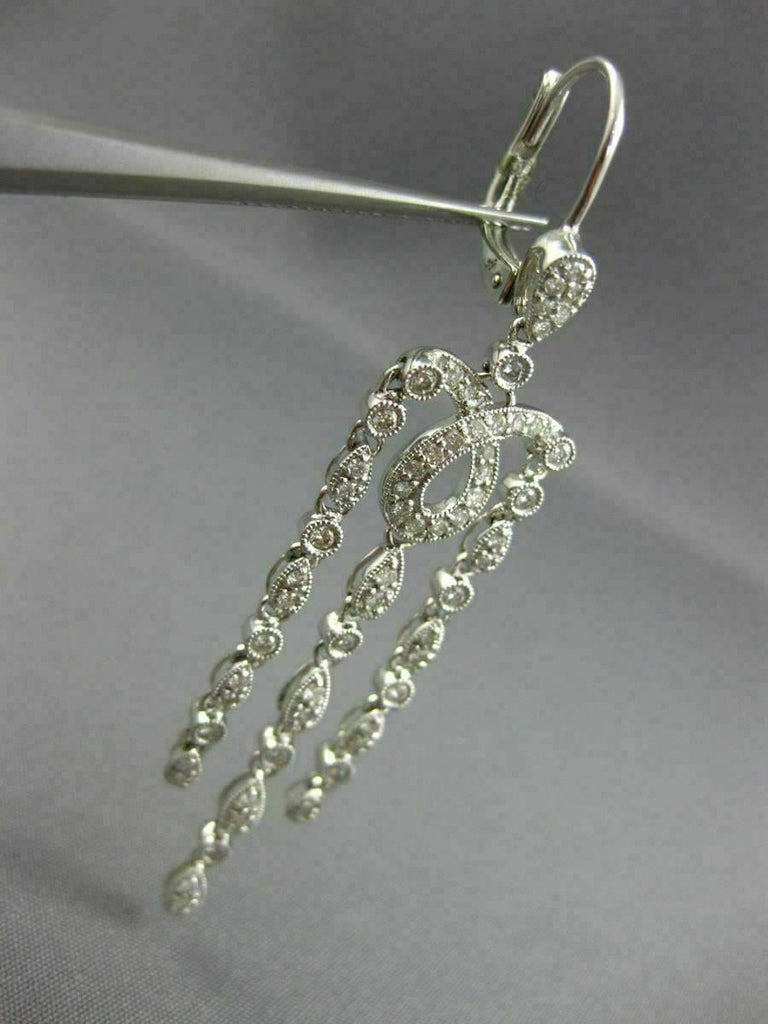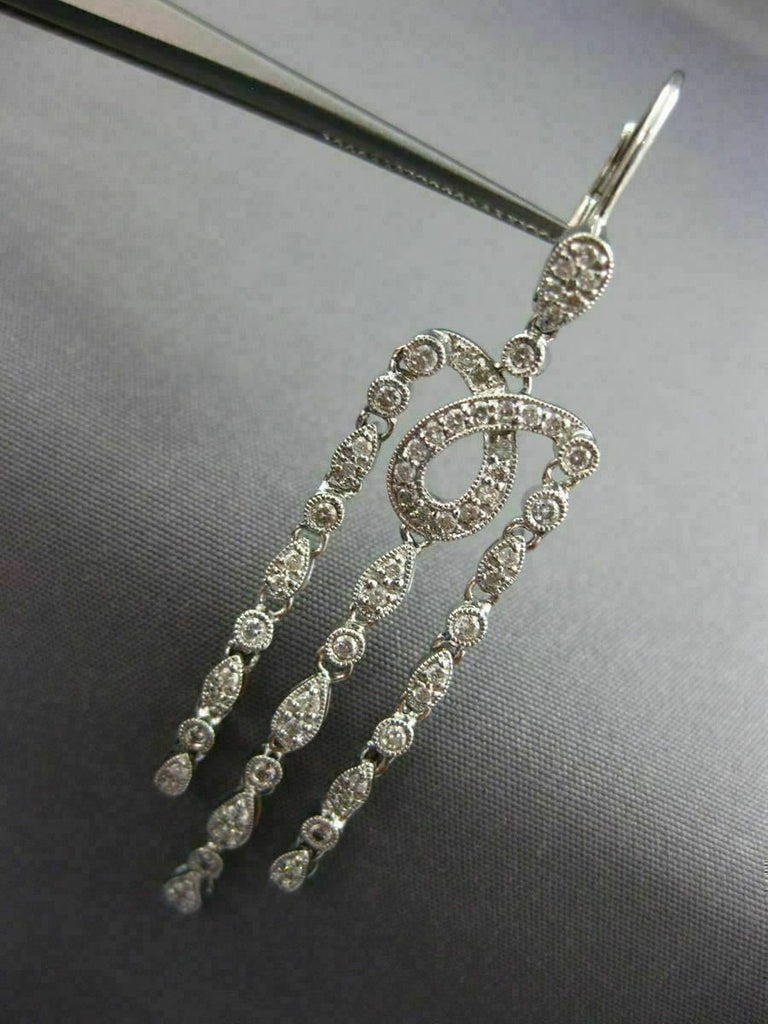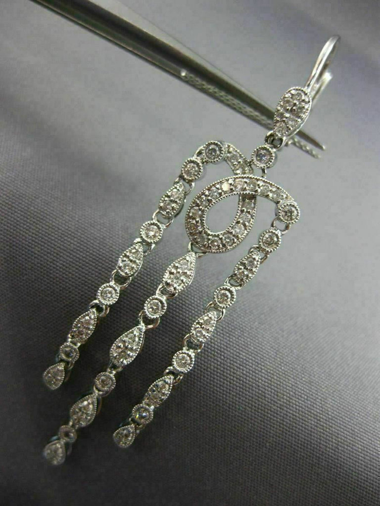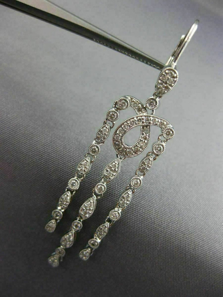 ESTATE LARGE 1.13CT DIAMOND 18KT WHITE GOLD MILGRAIN LEVERBACK HANGING EARRINGS