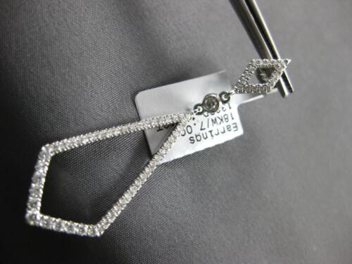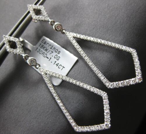 ESTATE LARGE 18KT WHITE GOLD HANGING EARRINGS. 3D ELONGATED GEOMETRICAL TEAR DROP DESIGN. DIAMONDS ARE F/G COLOR, VVS-VS CLARITY 1.14 CARATS. MEASURES 50mm X 16mm. WRITTEN APPRAISAL AVAILABLE. COMES IN A PRESENTABLE GIFT BOX.