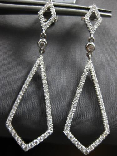 ESTATE LARGE 1.14CT DIAMOND 18KT WHITE GOLD ELONGATED TEAR DROP HANGING EARRINGS