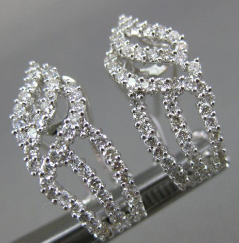 ESTATE LARGE 1.15CT DIAMOND 14K WHITE GOLD 3D MULTI ROW CLIP ON EARRINGS #26312