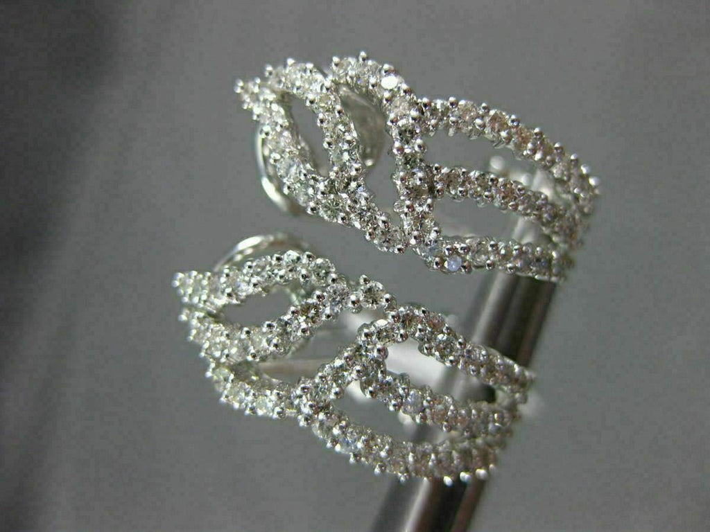 ESTATE LARGE 14KT WHITE GOLD CLIP ON EARRINGS. 3D LEAF OPEN FILIGREE DESIGN. DIAMONDS ARE F/G COLOR, VSSI CLARITY 1.15 CARATS. MEASURES 20MM X 9MM. WRITTEN APPRAISAL AVAILABLE. COMES IN A PRESENTABLE GIFT BOX.
