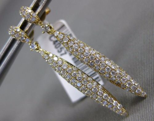 ESTATE LARGE 14KT YELLOW GOLD HANGING EARRINGS. 3D MULTI ROW ELONGATED DESIGN. DIAMONDS ARE F/G COLOR, VSSI CLARITY 1.15 CARATS.  MEASURES 35mm X 4mm. WRITTEN APPRAISAL AVAILABLE. COMES IN A PRESENTABLE GIFT BOX.