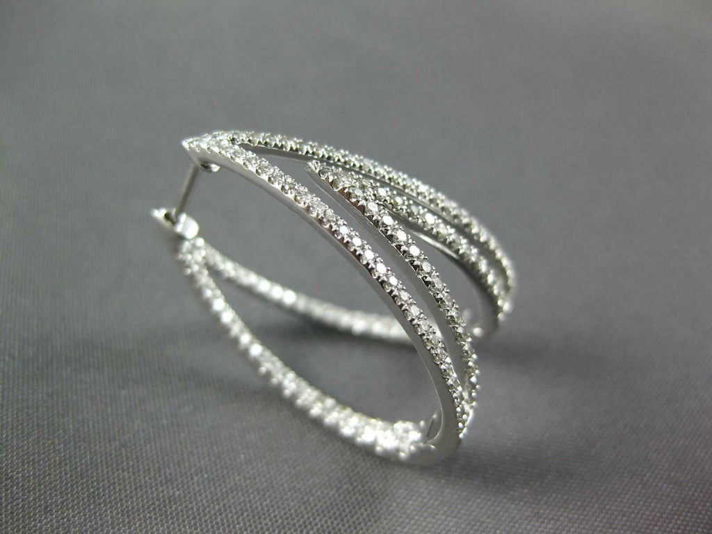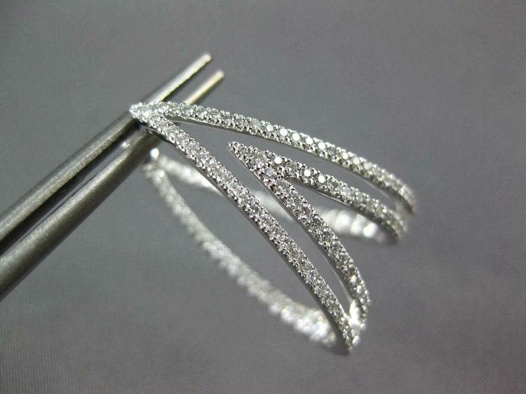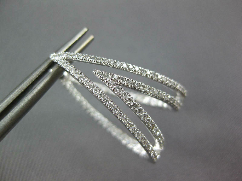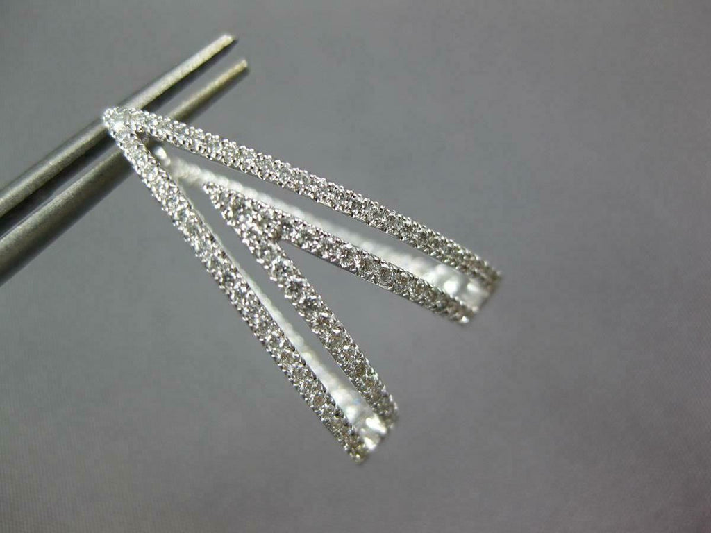 ESTATE LARGE18KT WHITE GOLD HOOP HUGGIEHANGINGEARRINGS. 3D DOUBLE V SHAPE INSIDE OUT DESIGN.DIAMONDS ARE F/G COLOR, VSSI CLARITY 1.15CARATS. MEASURES 25mm X 14mm.WRITTEN APPRAISAL AVAILABLE. COMES IN A PRESENTABLE GIFT BOX.