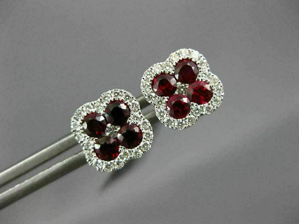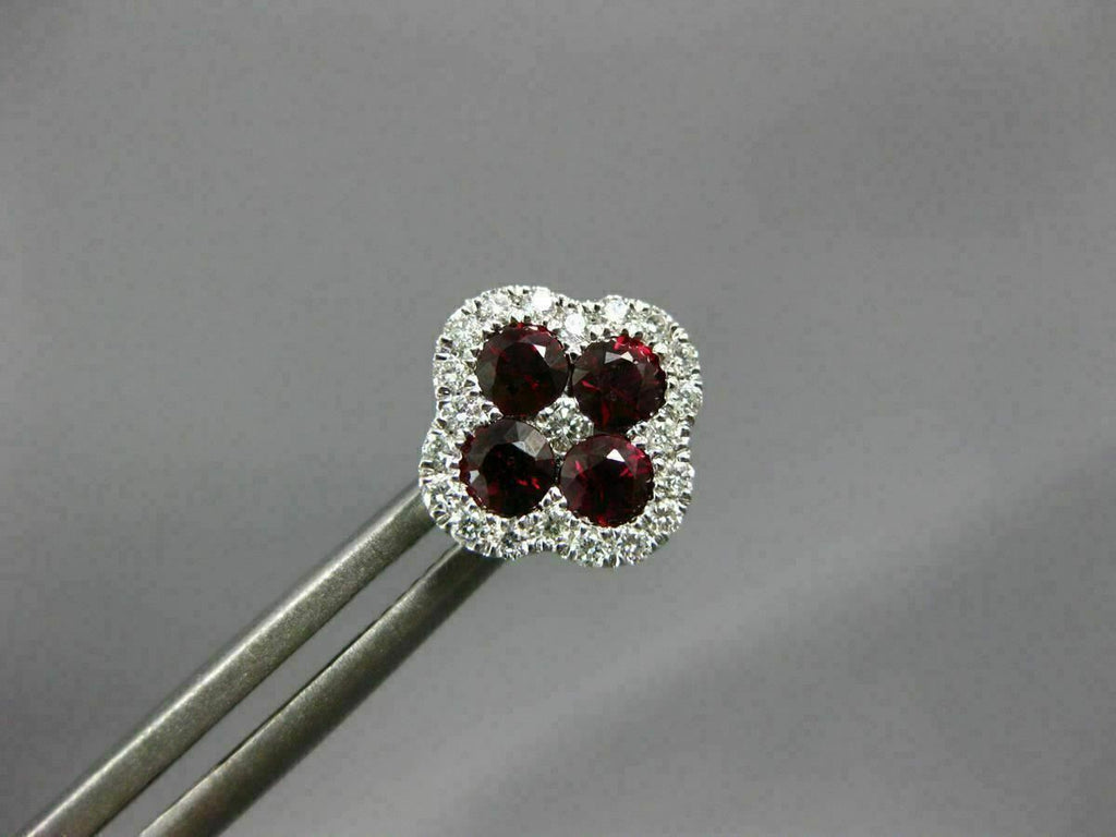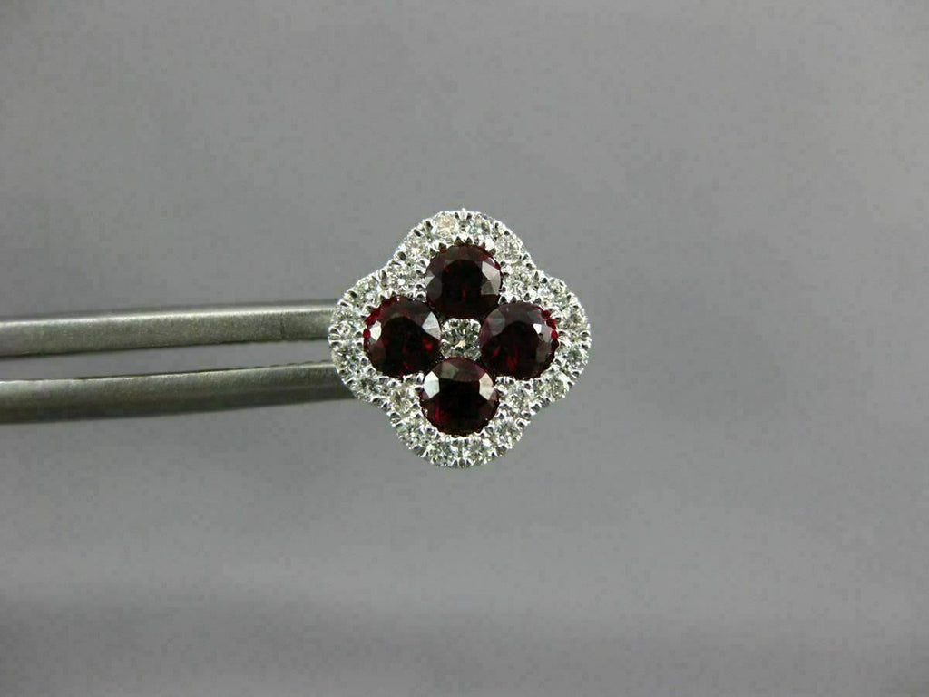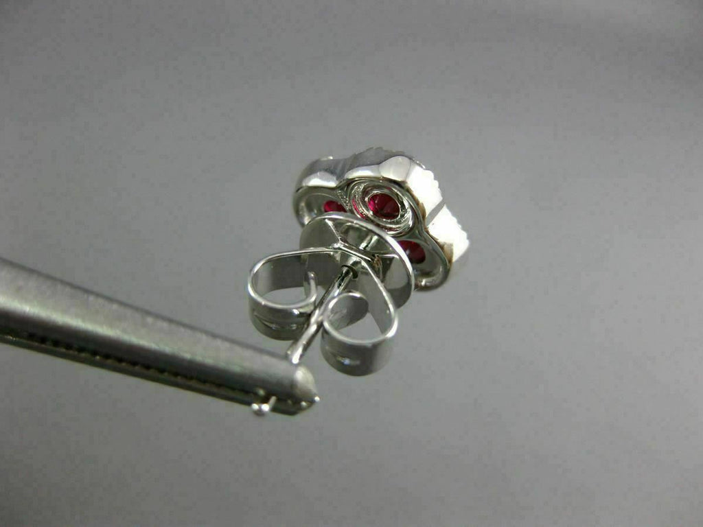 ESTATE LARGE 1.15CT DIAMOND & AAA RUBY 18KT WHITE GOLD 3D SQUARE FLOWER EARRINGS