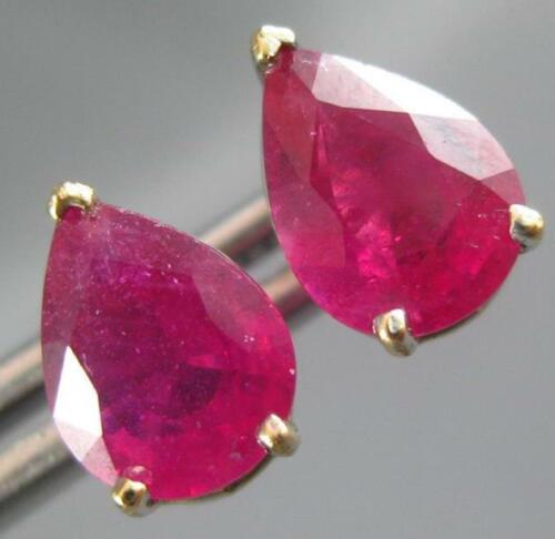 ESTATE LARGE 1.26CT AAA RUBY 14KT WHITE GOLD 3D PEAR SHAPE CLASSIC STUD EARRINGS