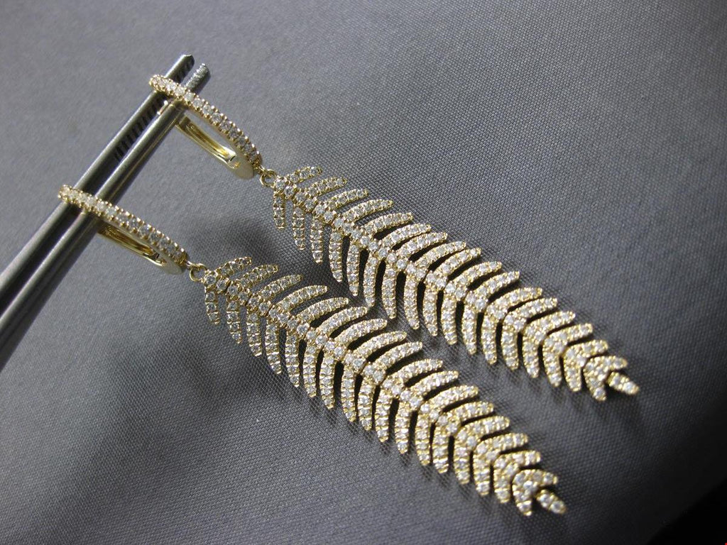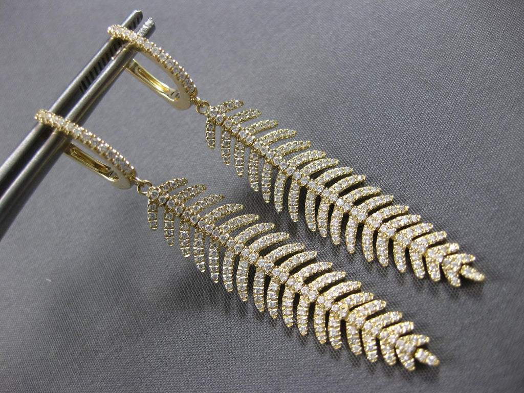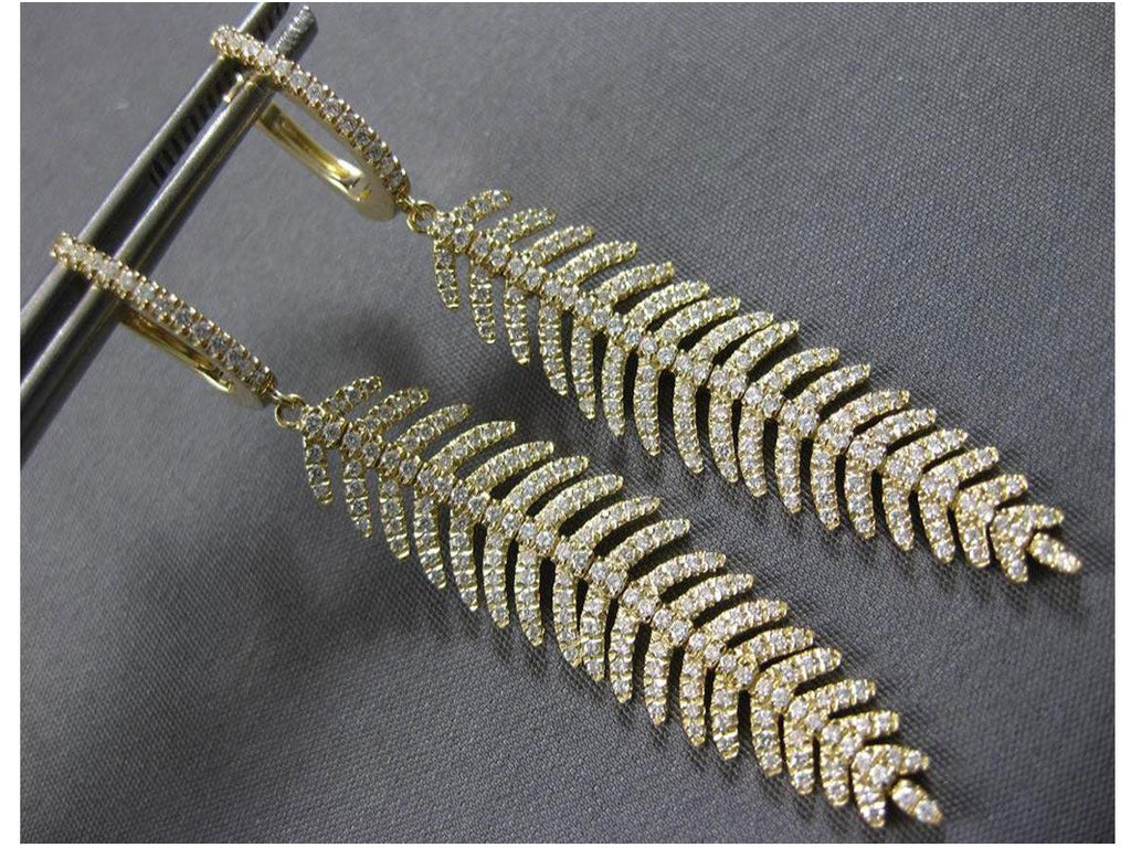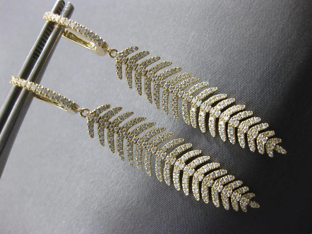 LARGE 14KT YELLOW GOLD LEVERBACK HANGING EARRINGS. 3D MULTI LEAF FLEXIBLE CHANDELIER DESIGN. DIAMONDS ARE F/G COLOR, VVS-VS CLARITY 1.28 CARATS. MEASURES 55mm X 10mm. WRITTEN APPRAISAL AVAILABLE. COMES IN A PRESENTABLE GIFT BOX.