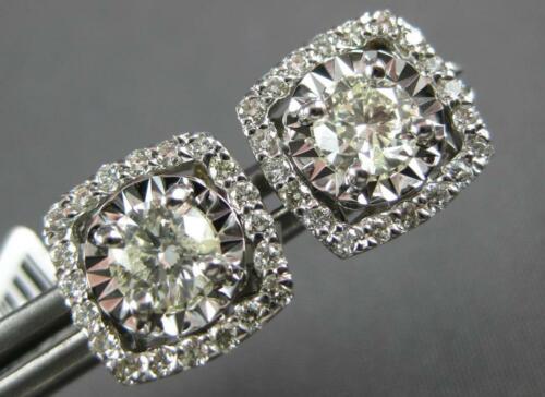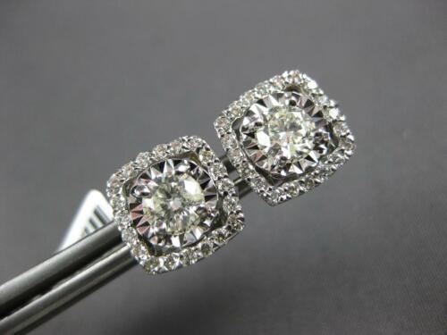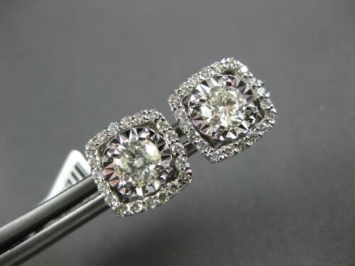 ESTATE LARGE 1.29CT DIAMOND 14KT WHITE GOLD SOLITAIRE SQUARE HALO STUD EARRINGS