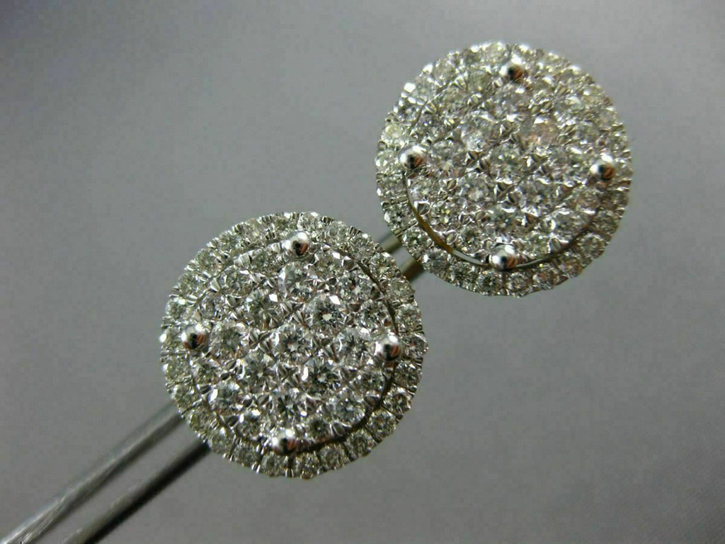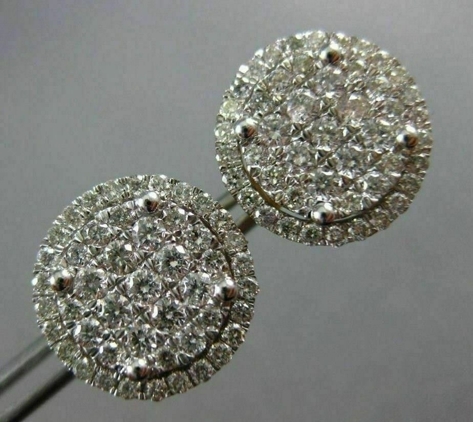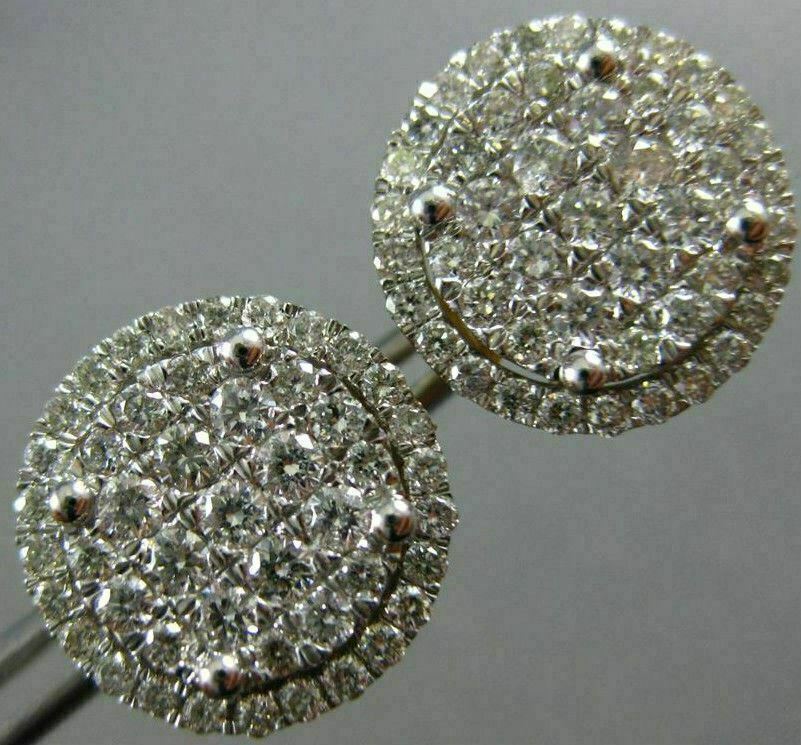 ESTATE LARGE 14KT WHITE GOLD SCREW BACK STUD EARRINGS. 3D CLUSTER ROUND FILIGREE CLASSIC DESIGN. DIAMONDS ARE F/G COLOR, VSSI CLARITY 1.30 CARATS. MEASURES 13mm WIDE. WRITTEN APPRAISAL AVAILABLE. COMES IN A PRESENTABLE GIFT BOX