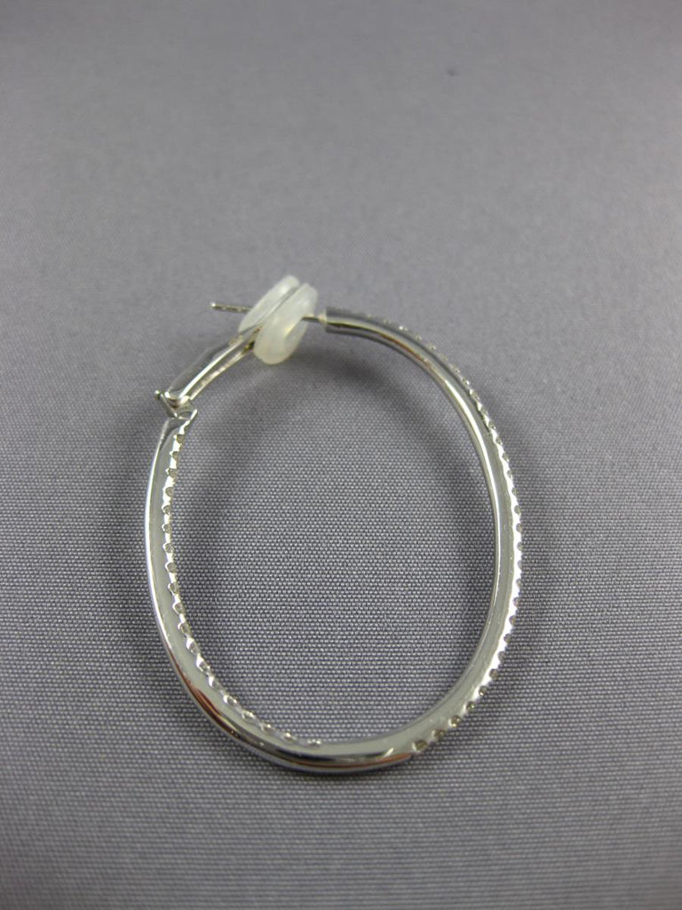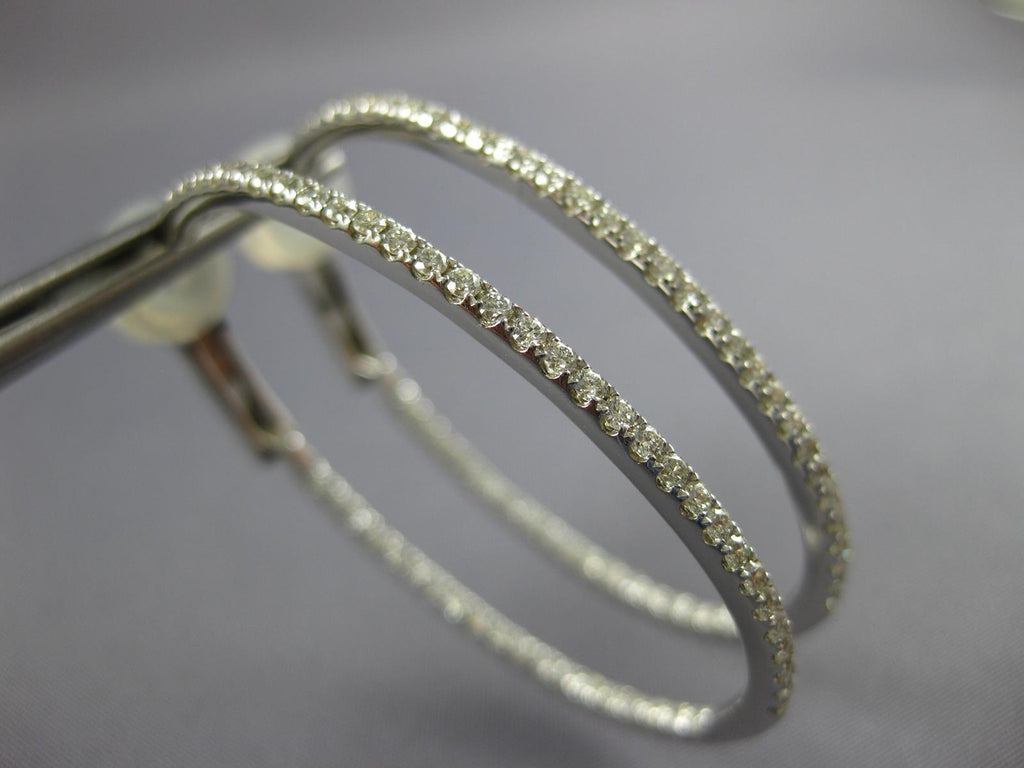 ESTATE LARGE18KT WHITEGOLD CLIP ON HOOP HANGINGEARRINGS. 3D INSIDE OUT OVALDESIGN. DIAMONDS ARE F/G COLOR, VSSI CLARITY 1.31CARATS.MEASURES 42MM X 2MM. WRITTEN APPRAISAL AVAILABLE. COMES IN A PRESENTABLE GIFT BOX.