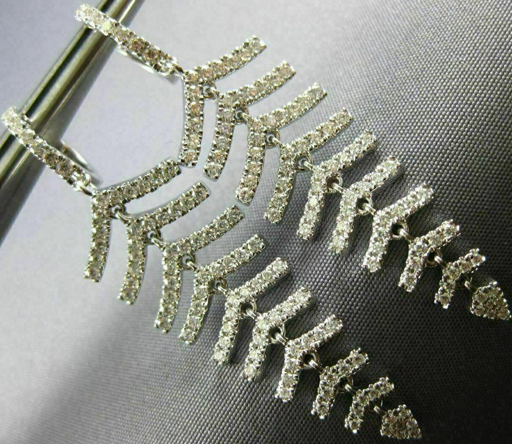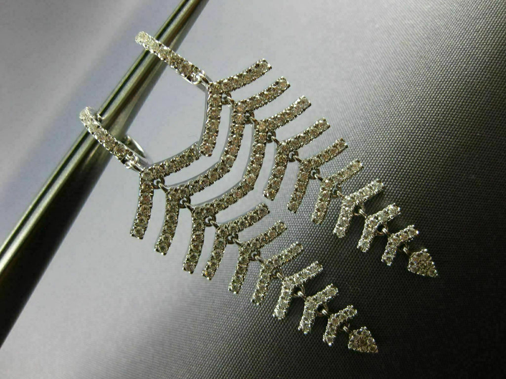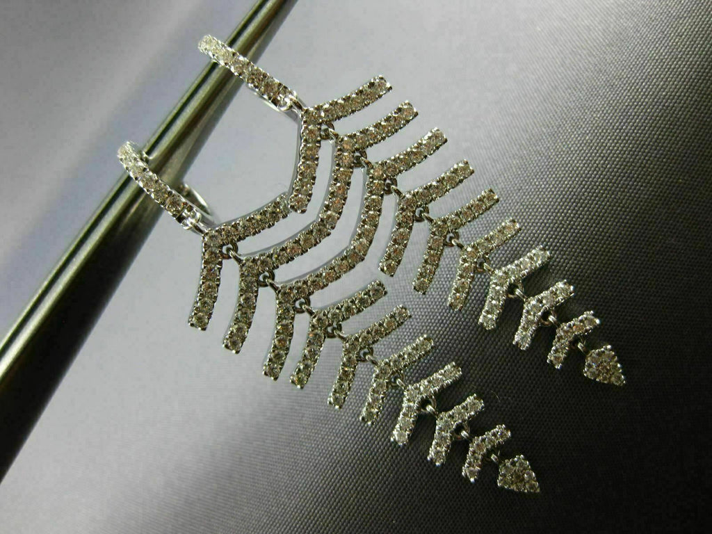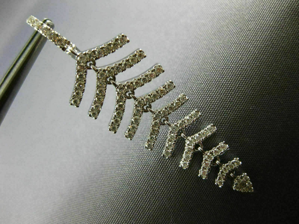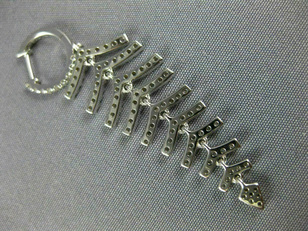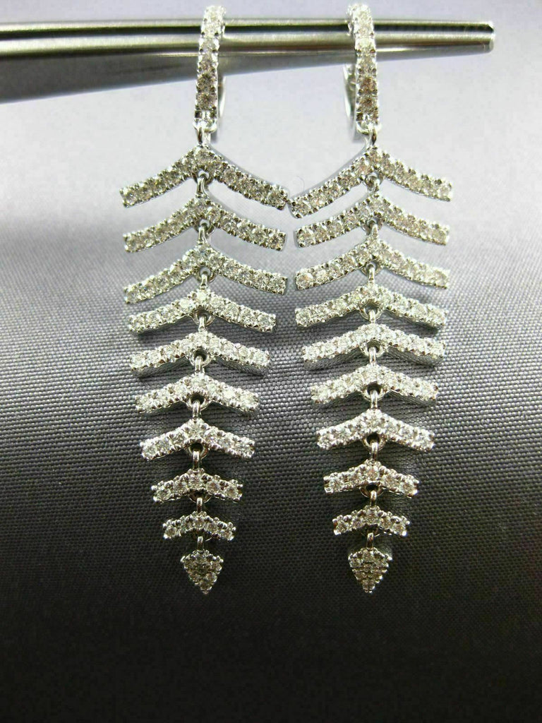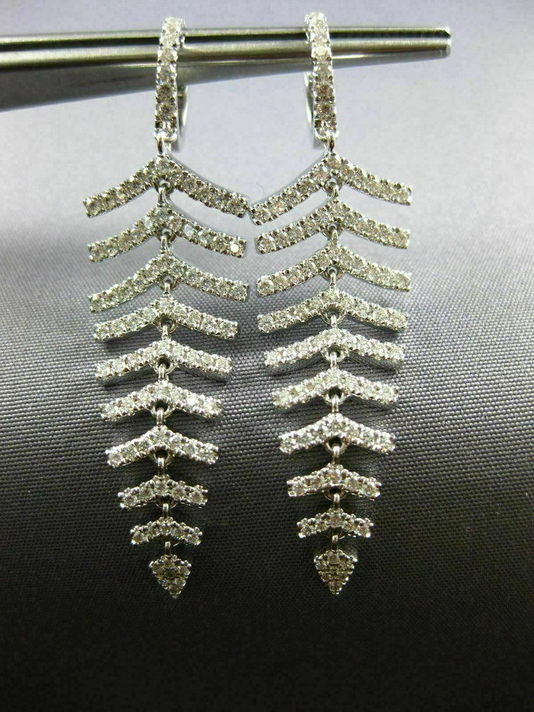 ESTATE LARGE 18KT WHITE GOLD LOVE HANGING EARRINGS. 3D MULTI LEAF GRADUATING JOURNEY DESIGN. DIAMONDS ARE F/G COLOR, VSSI CLARITY 1.34 CARATS. MEASURES 50mm X 14mm. WRITTEN APPRAISAL AVAILABLE. COMES IN A PRESENTABLE GIFT BOX.