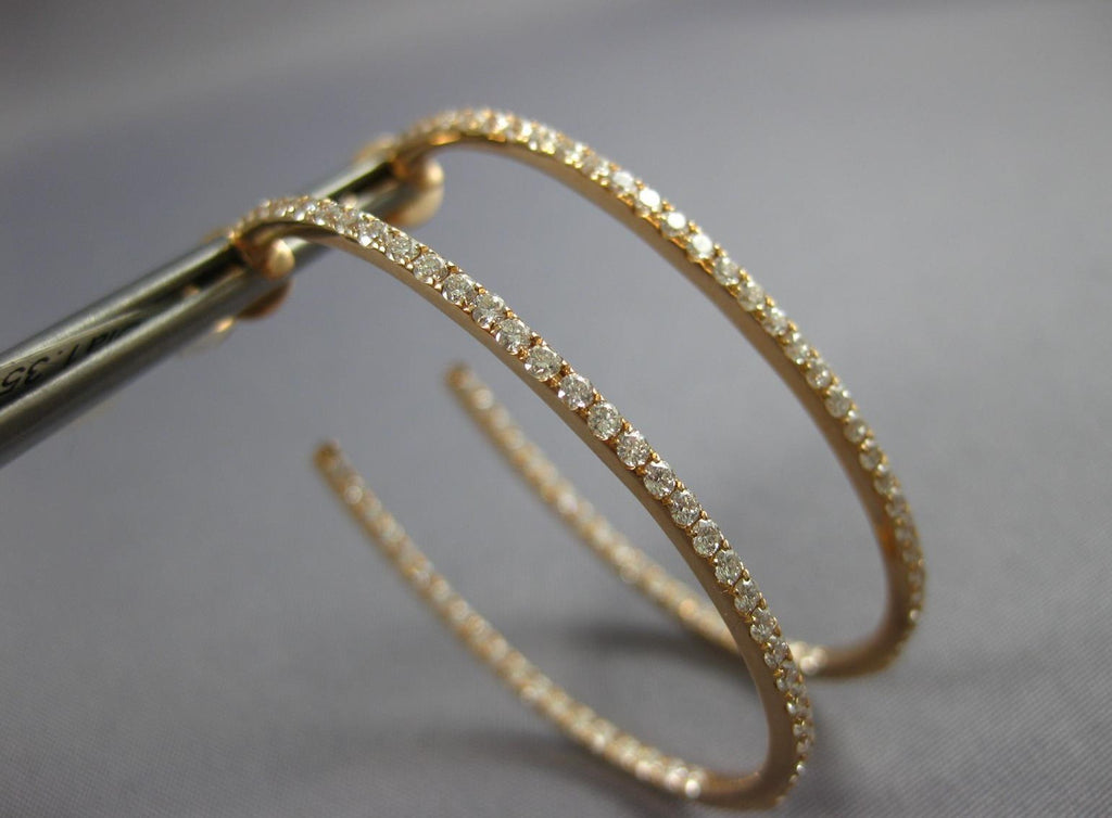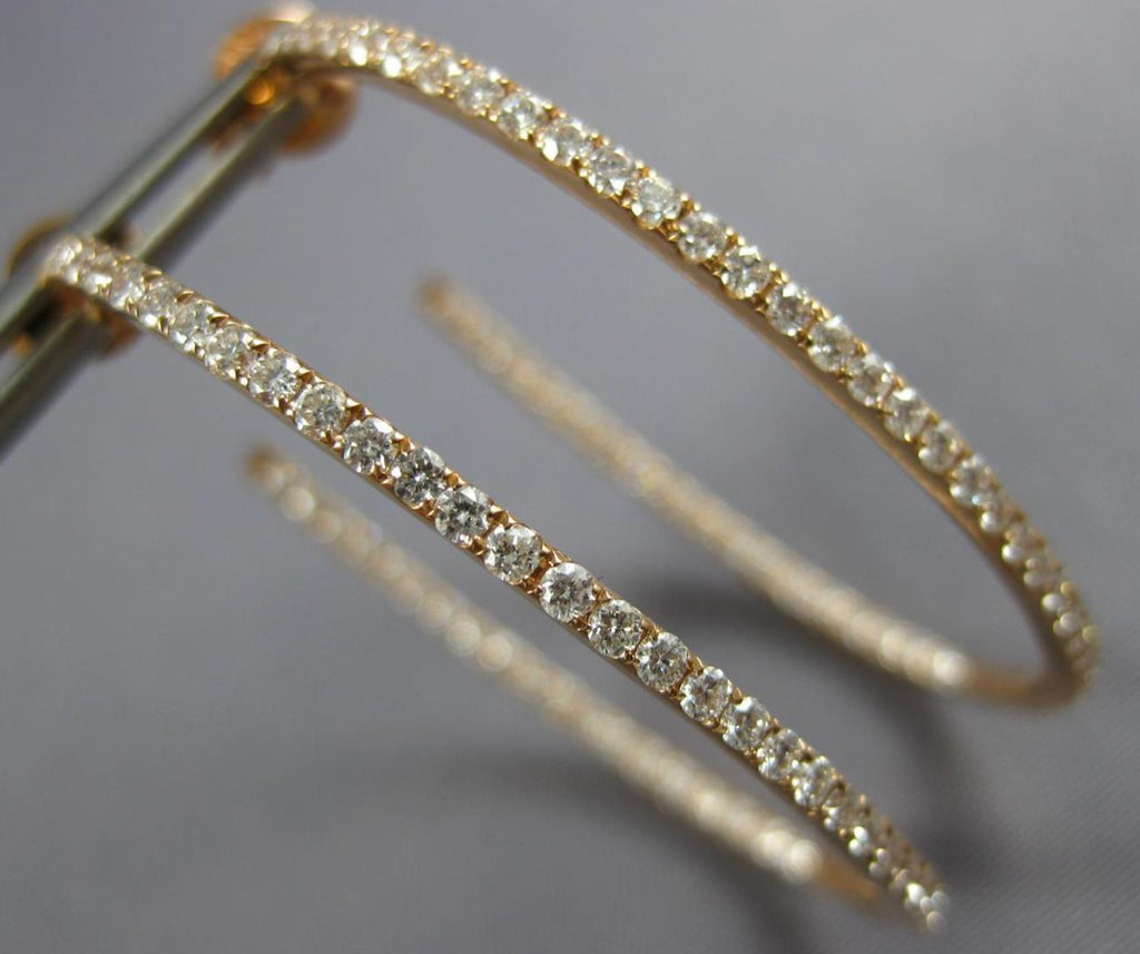 ESTATE LARGE 18KT ROSE GOLD HOOP HANGING EARRINGS. 3D INSIDE OUT OVAL DESIGN. DIAMONDS ARE F/G COLOR, VSSI CLARITY 1.35 CARATS. MEASURES 40mm X 2mm. WRITTEN APPRAISAL AVAILABLE. COMES IN A PRESENTABLE GIFT BOX.