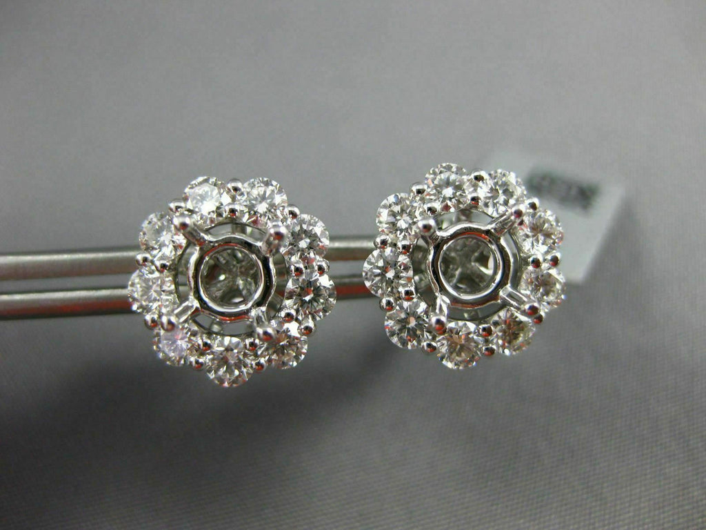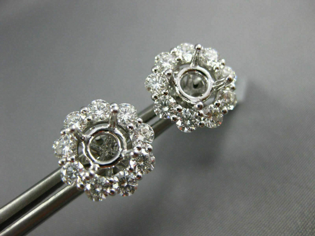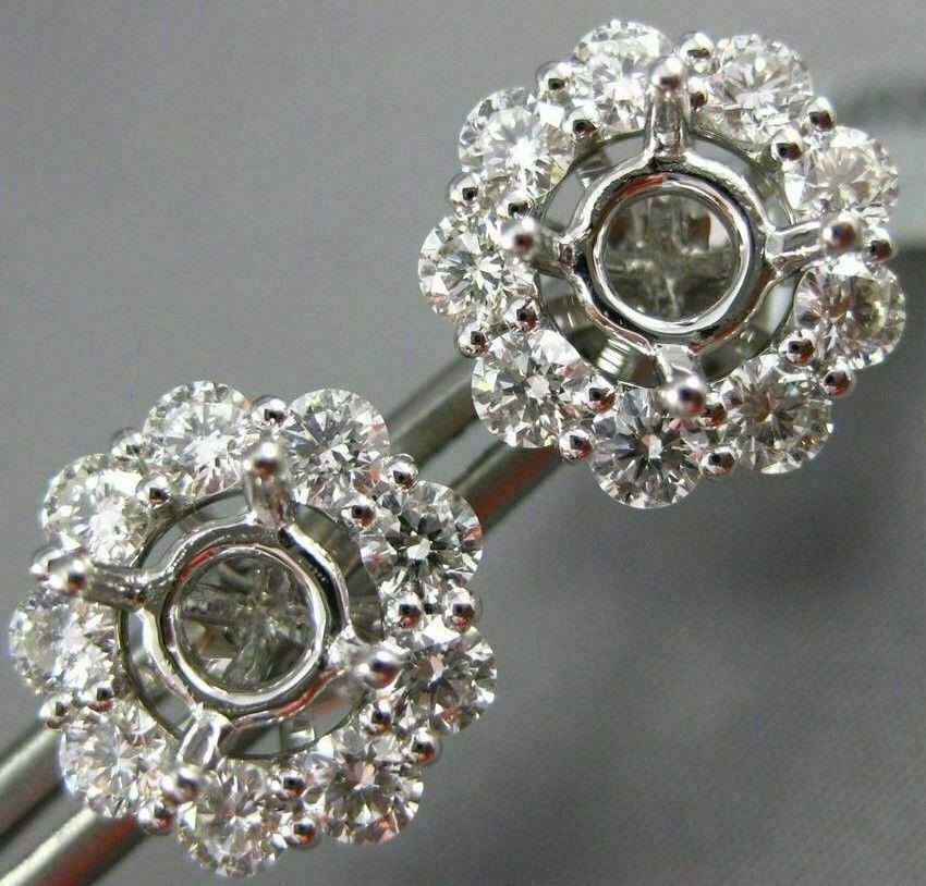 ESTATE LARGE 18KT WHITE GOLD JACKET EARRINGS. 3D CLASSIC FLOWER DESIGN. DIAMONDS ARE F/G COLOR, VVS CLARITY 1.39 CARATS. MEASURES 12mm WIDE. FITS UP TO A 5.5mm ROUND STONE. WRITTEN APPRAISAL AVAILABLE. COMES IN A PRESENTABLE GIFT BOX.