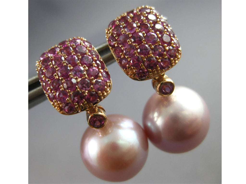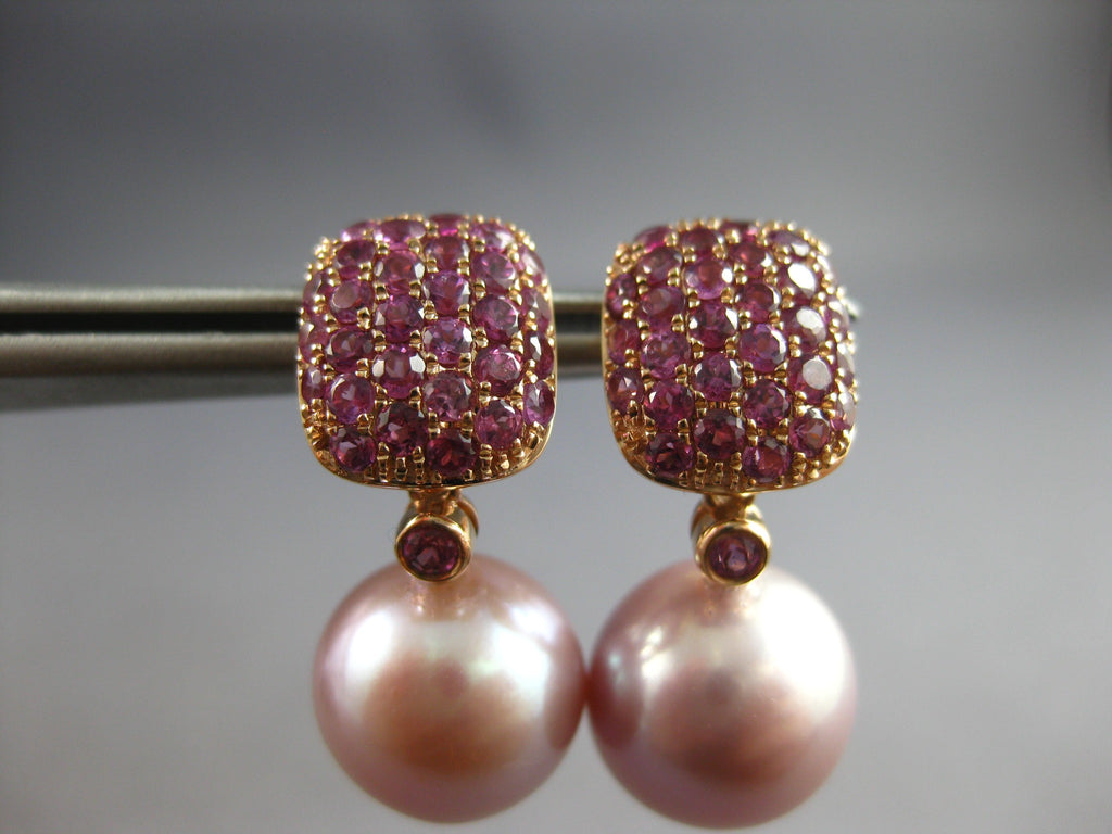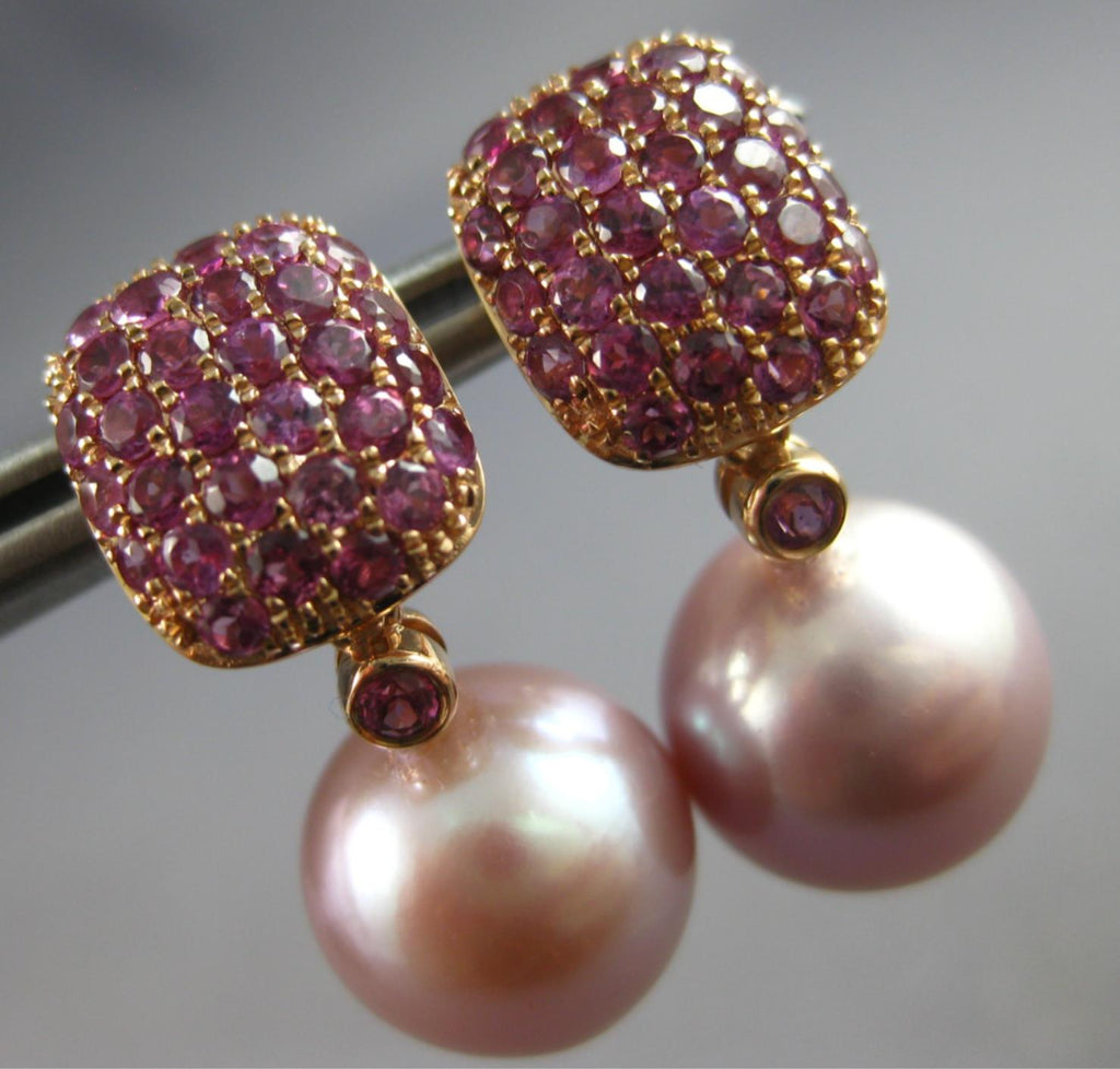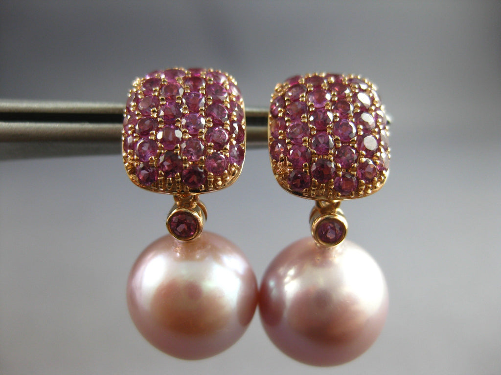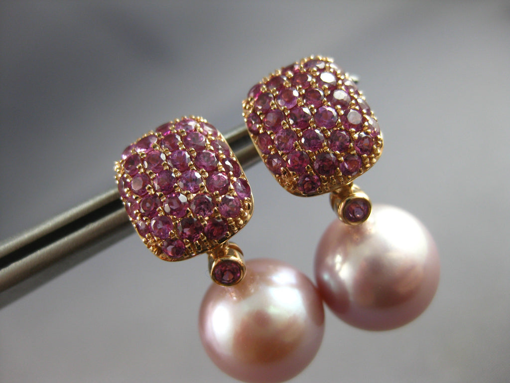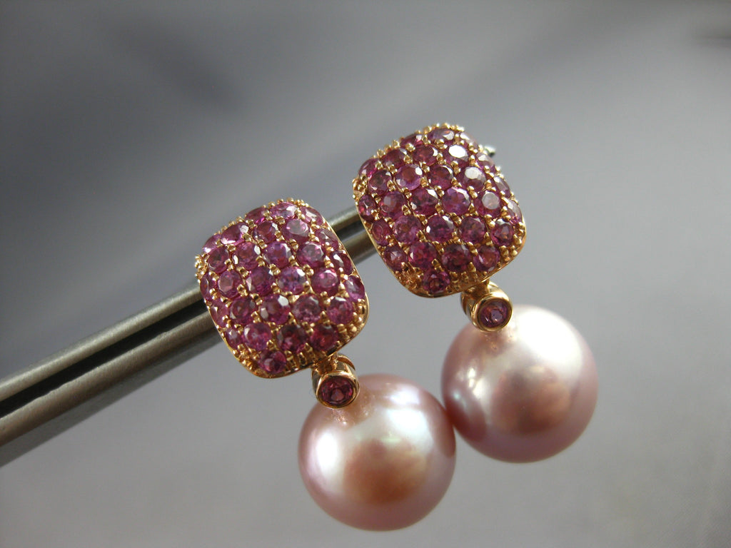 ESTATE LARGE 1.45CT AAA PINK RHODOLITE & PINK SOUTH SEA PEARL 18K ROSE GOLD 3D EARRINGS