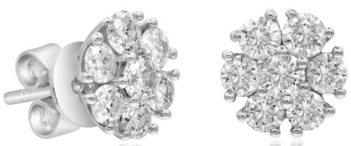 ESTATE LARGE 1.46CT DIAMOND 14KT WHITE GOLD 3D CLASSIC FLOWER STUD EARRINGS