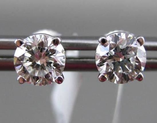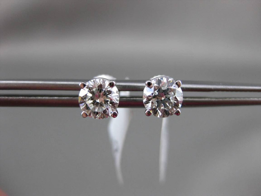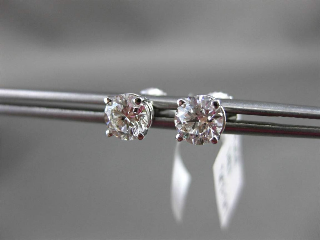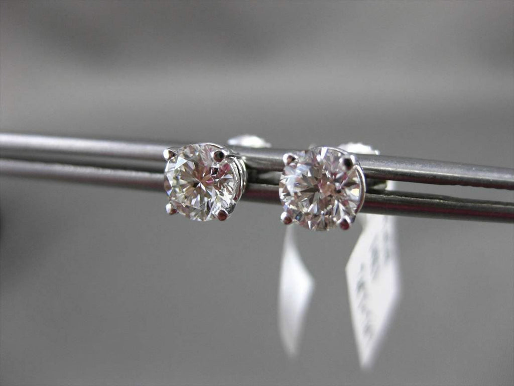 ESTATE LARGE 1.48CT DIAMOND 14KT WHITE GOLD 3D ROUND STUD EARRINGS 5.5mm #14048
