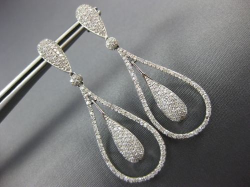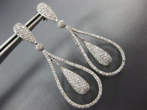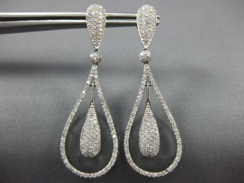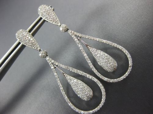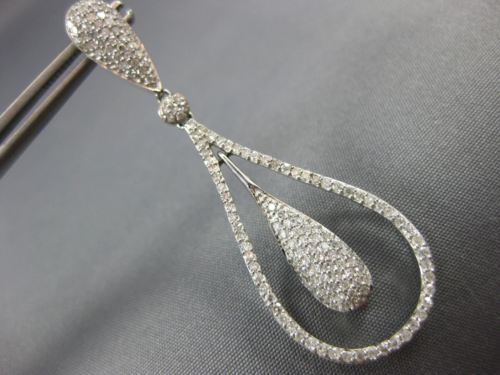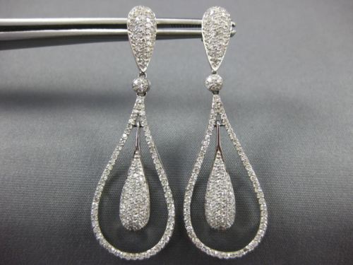ESTATE LARGE 14KT WHITE GOLD HANGING EARRINGS. 3D CLASSIC TEAR DROP CLUSTER DESIGN. DIAMONDS ARE F/G COLOR, VSSI CLARITY 1.50 CARATS. MEASURES 50mm X 17mm. WRITTEN APPRAISAL AVAILABLE. COMES IN A PRESENTABLE GIFT BOX.
