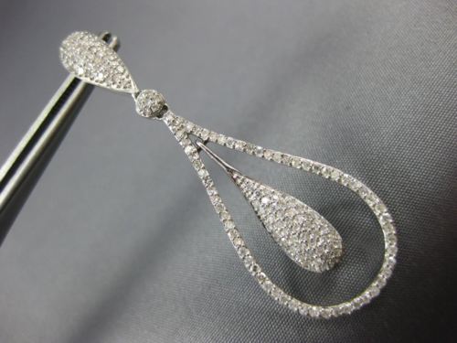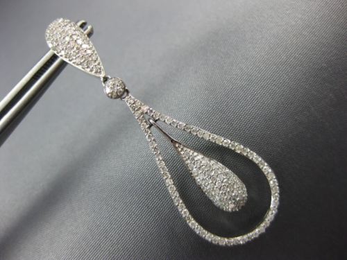 ESTATE LARGE 1.50CT DIAMOND 14K WHITE GOLD 3D TEAR DROP CLUSTER HANGING EARRINGS