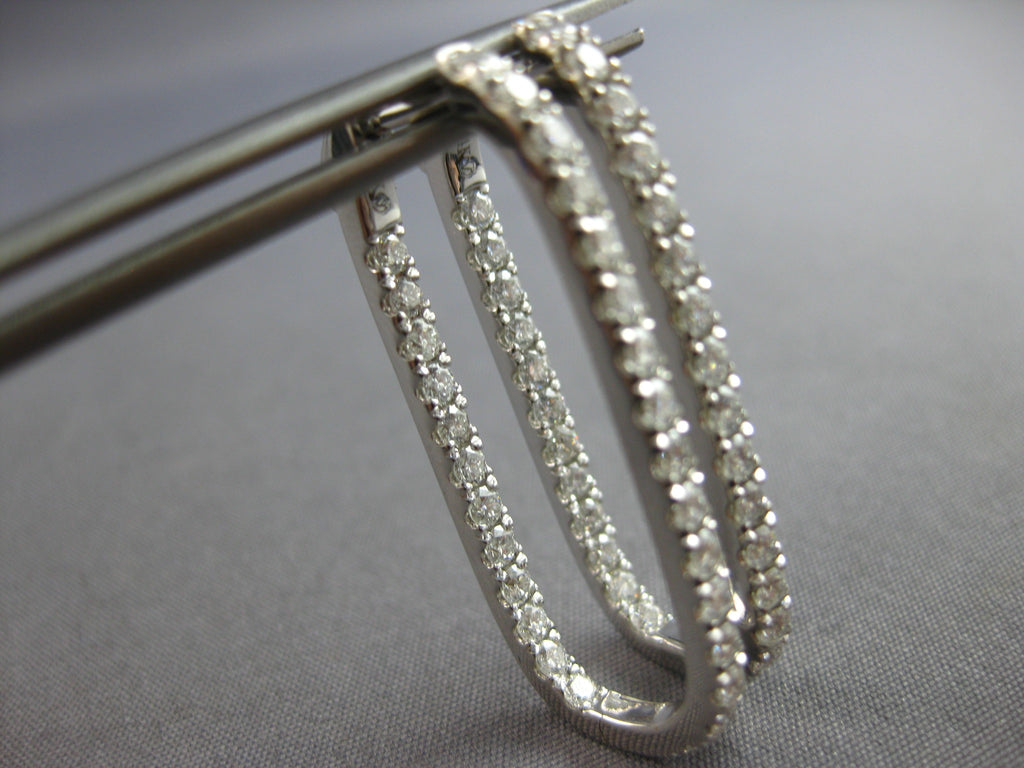 ESTATE LARGE 1.52CT DIAMOND 14K WHITE GOLD INSIDE OUT RECTANGULAR HOOP HANGING EARRINGS