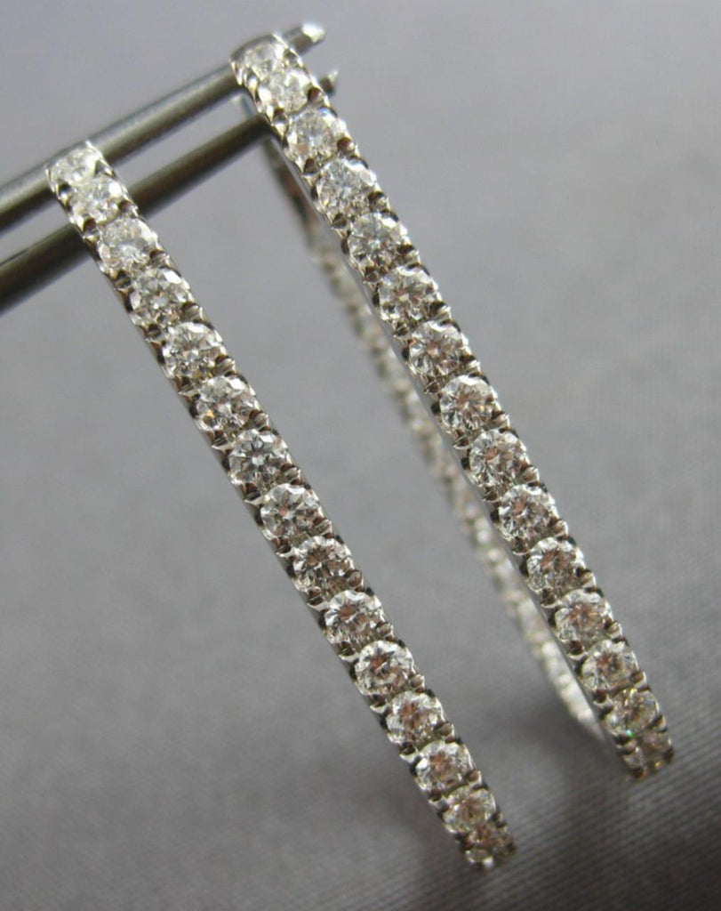LARGE 14KT WHITEA GOLD HOOPA HANGINGA EARRINGS. 3D INSIDE OUT RECTANGULARA DESIGN. DIAMONDS ARE F/G COLOR, VVS-VS CLARITY 1.52A CARATS. MEASURES 32.5mm X 2.5mm. WRITTEN APPRAISAL AVAILABLE. COMES IN A PRESENTABLE GIFT BOX.