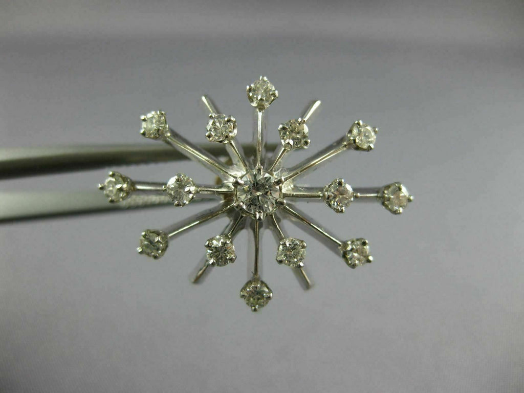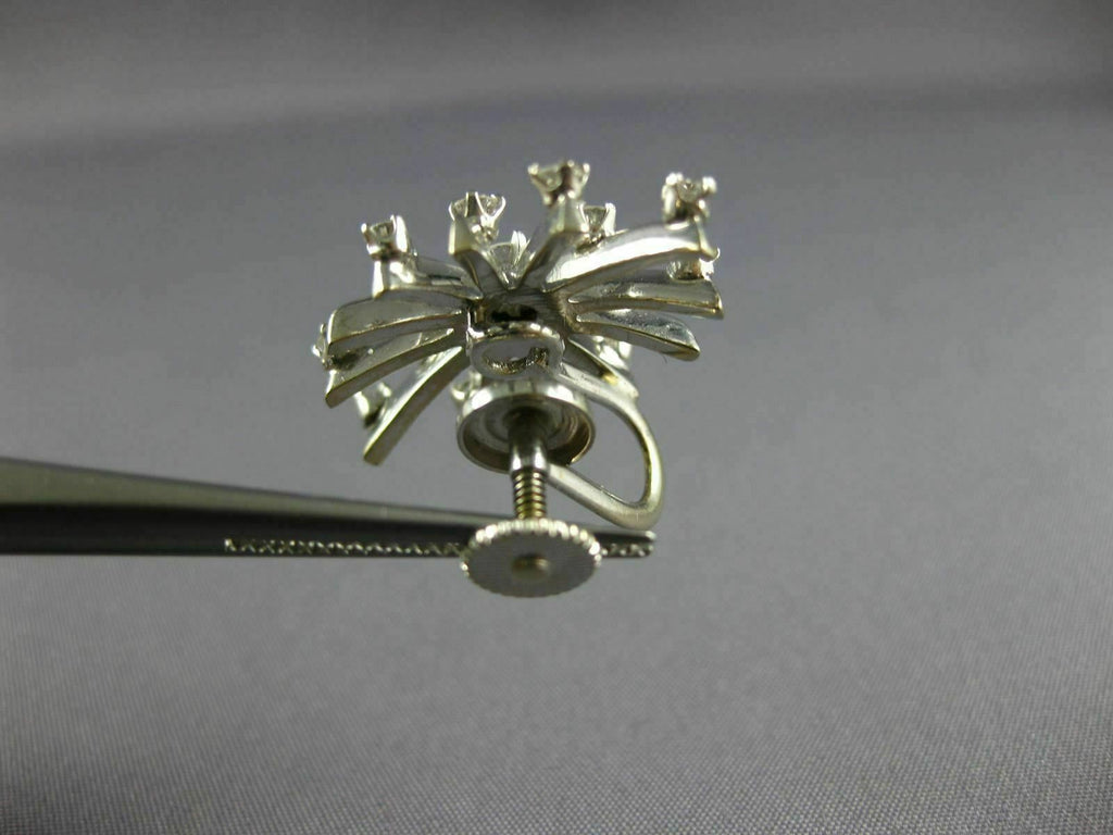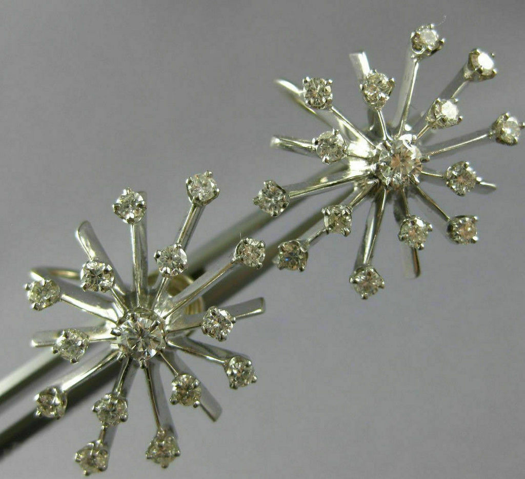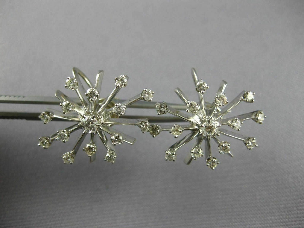 ESTATE LARGE 1.52CT DIAMOND 14KT WHITE GOLD FLOWER SNOWFLAKE SCREW BACK EARRINGS