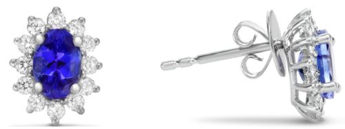 ESTATE LARGE 18KT WHITE GOLD STUD EARRINGS. 3D CLASSIC FLOWER OVAL DESIGN. DIAMONDS ARE F/G COLOR, VSSI CLARITY .40 CARATS. AAA TANZANITES ARE 1.12 CARATS. MEASURES 10mm X 8mm WIDE. WRITTEN APPRAISAL AVAILABLE. COMES IN A PRESENTABLE GIFT BOX.