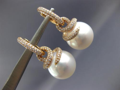 ESTATE LARGE 1.55CT DIAMOND & AAA SOUTH SEA PEARL 18K ROSE GOLD HANGING EARRINGS