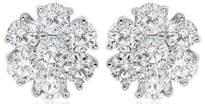 ESTATE LARGE 14KT WHITE GOLD STUD EARRINGS. 3D CLASSIC FLOWER DESIGN. ROUND DIAMONDS ARE F/G COLOR, VSSI CLARITY 1.56 CARATS.
