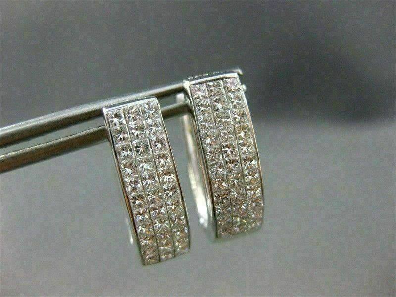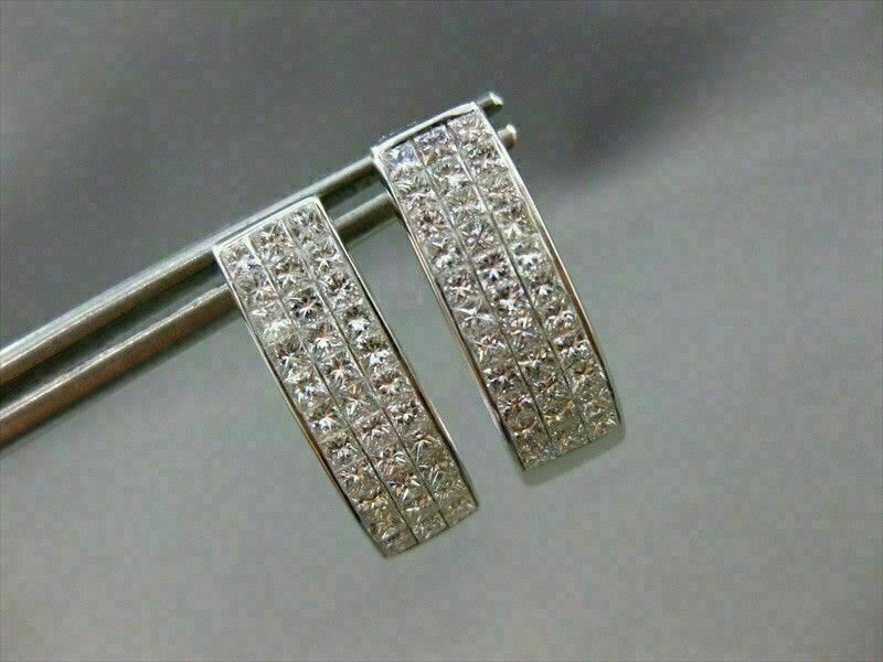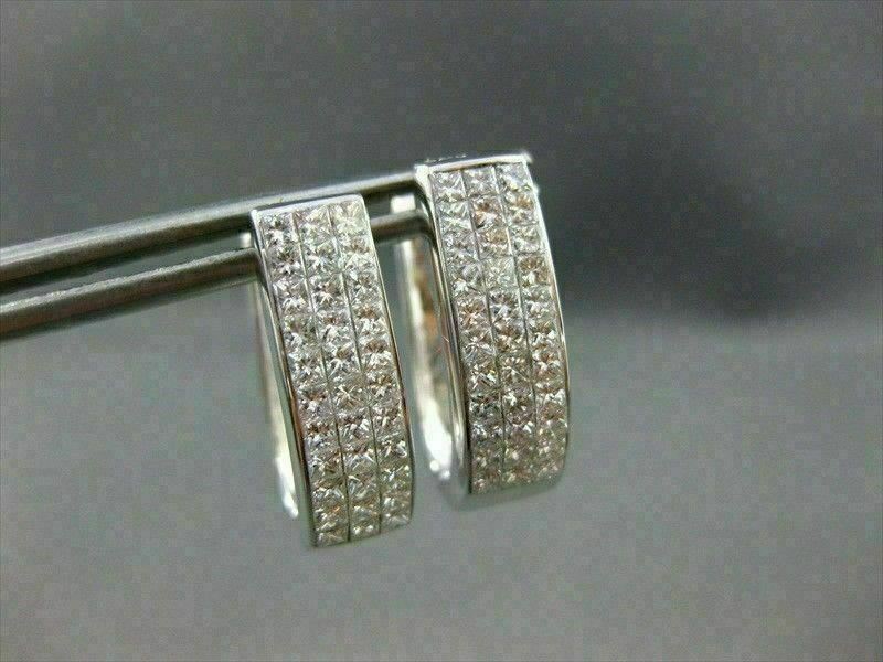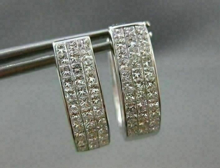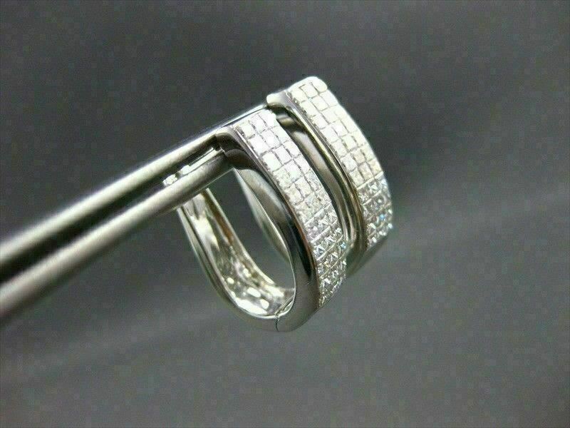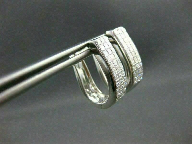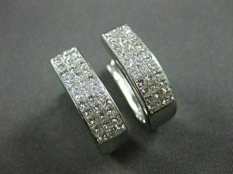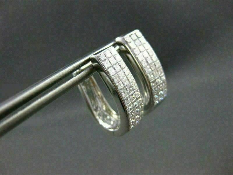 ESTATE 14KT WHITE GOLD HUGGIE EARRINGS. INVISIBLE RECTANGLE DESIGN. DIAMONDS ARE 1.56 CARAT. F/G COLOR. VVS CLARITY. MEASURES 19X6MM. WRITTEN APPRAISAL AVAILABLE. COMES IN A PRESENTABLE GIFT BOX