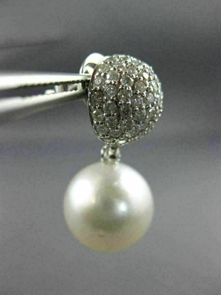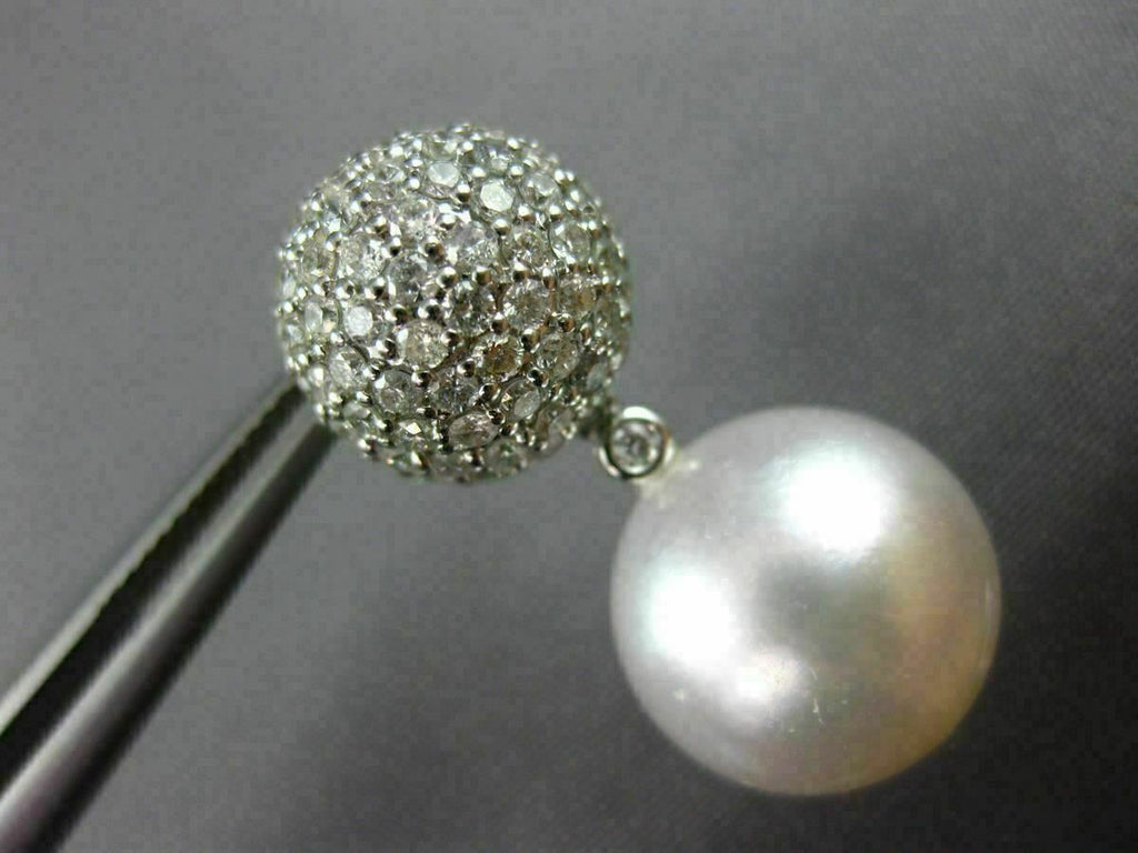 ESTATE LARGE 1.56CT DIAMOND & AAA SOUTH SEA PEARL 18K WHITE GOLD ETOILE EARRINGS