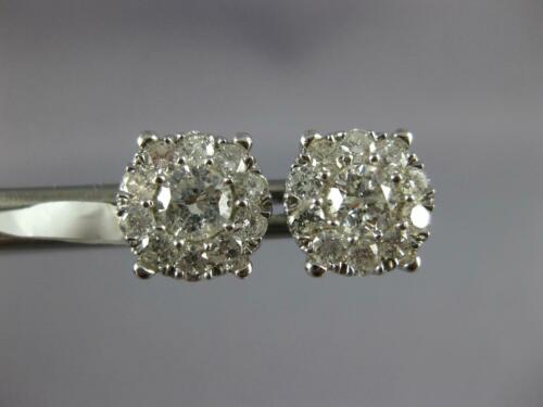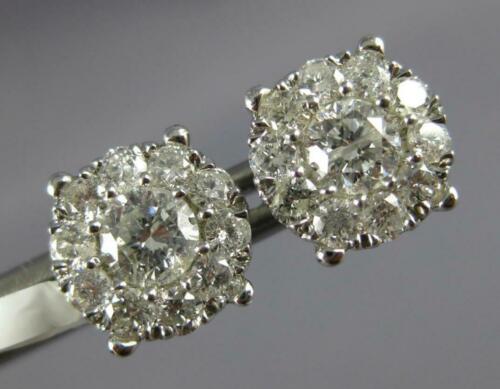 ESTATE LARGE 1.59CT DIAMOND 14KT WHITE GOLD HALO FLOWER SCREWBACK STUD EARRINGS