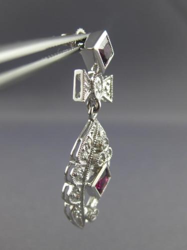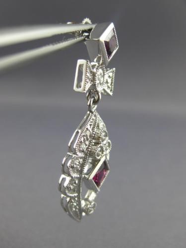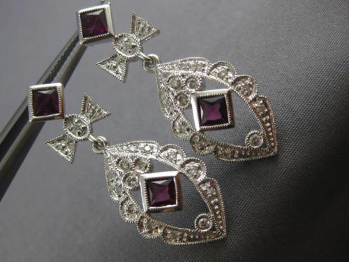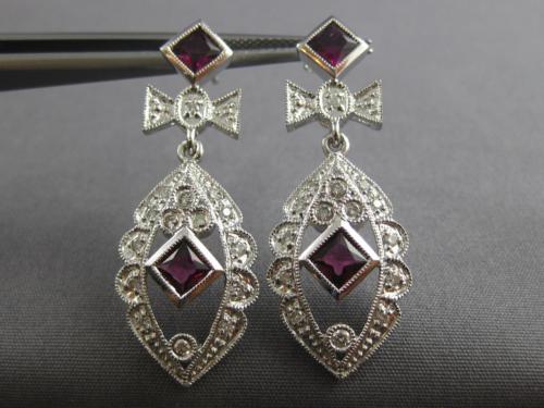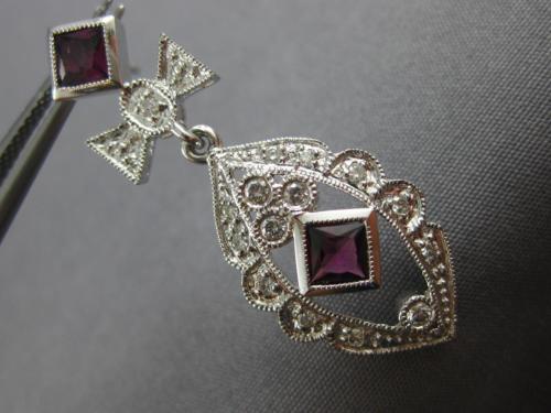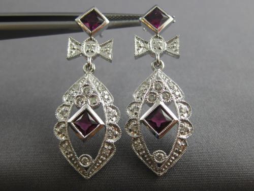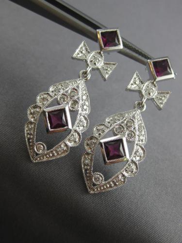 ESTATE LARGE 1.60CT DIAMOND & TOURMALINE 14KT WHITE GOLD FLOWER HANGING EARRINGS