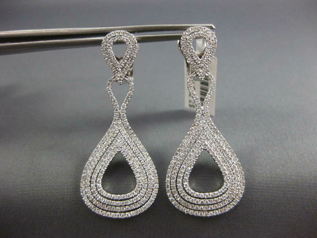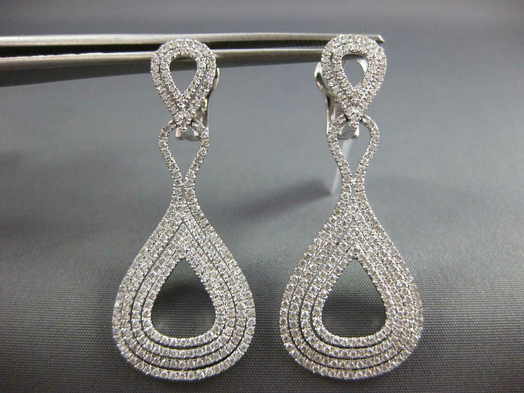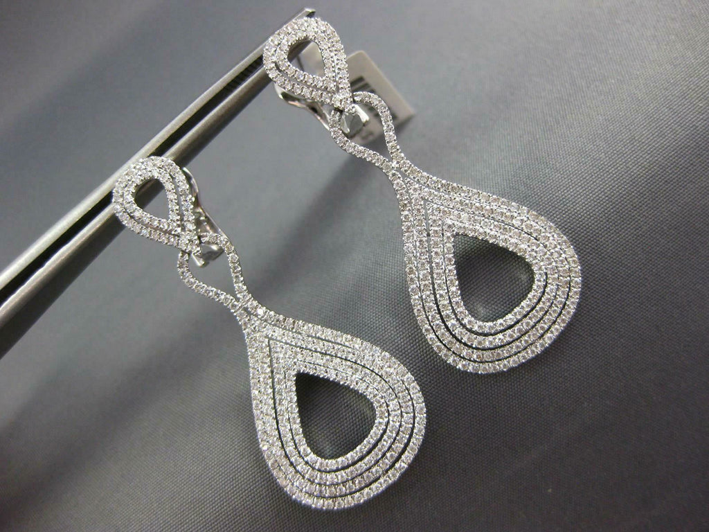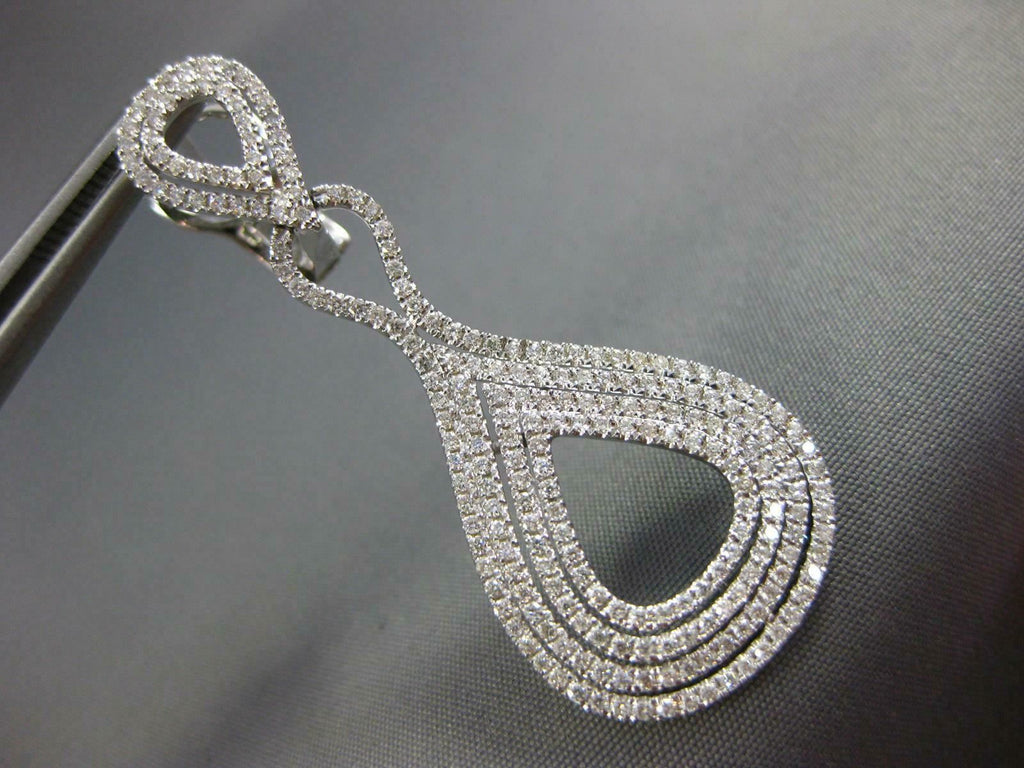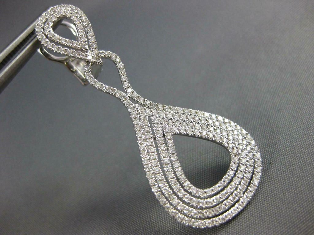 ESTATE LARGE 1.66CT DIAMOND 18KT WHITE GOLD MULTI ROW TEAR DROP HANGING EARRINGS