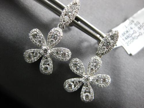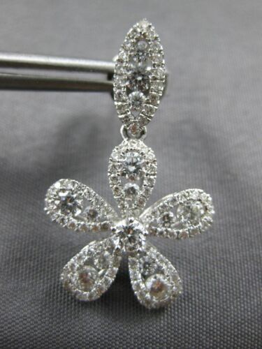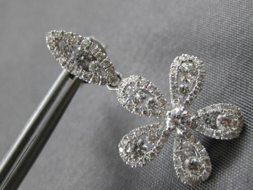 ESTATE LARGE 1.69CT DIAMOND 18KT WHITE GOLD 3D FLOWER LEAF FUN HANGING EARRINGS