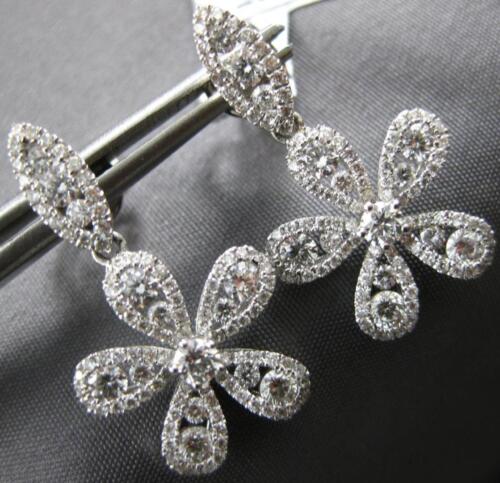ESTATE LARGE 18KT WHITE GOLD FUN HANGING EARRINGS. 3D FLOWER LEAF DESIGN. DIAMONDS ARE F/G COLOR, VVS-VS CLARITY 1.69 CARATS. MEASURES 25mm X 14mm. WRITTEN APPRAISAL AVAILABLE. COMES IN A PRESENTABLE GIFT BOX.
