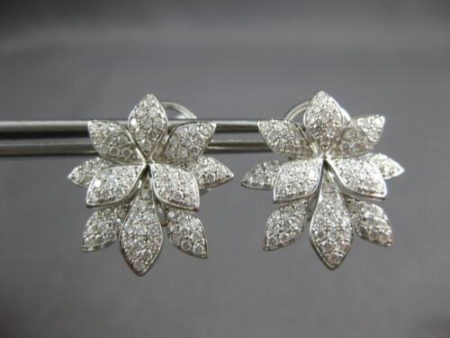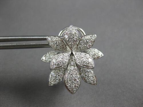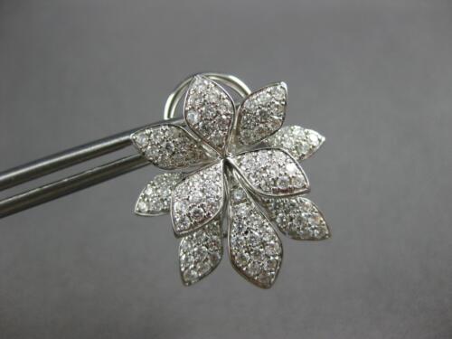 ESTATE LARGE 1.77CT DIAMOND 18KT WHITE GOLD 3D FLOWER CLIP ON HANGING EARRINGS