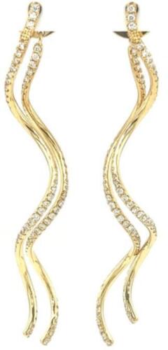 ESTATE LARGE 18KT YELLOW GOLD FUN HANGING EARRINGS. 3D DOUBLE SWIRL DESIGN. DIAMONDS ARE F/G COLOR, VSSI CLARITY 1.81 CARATS. WRITTEN APPRAISAL AVAILABLE. COMES IN A PRESENTABLE GIFT BOX.