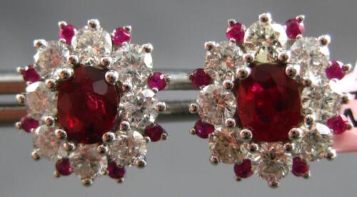 ESTATE LARGE 1.81CT DIAMOND & AAA RUBY 14KT WHITE GOLD 3D FLOWER STUD EARRINGS