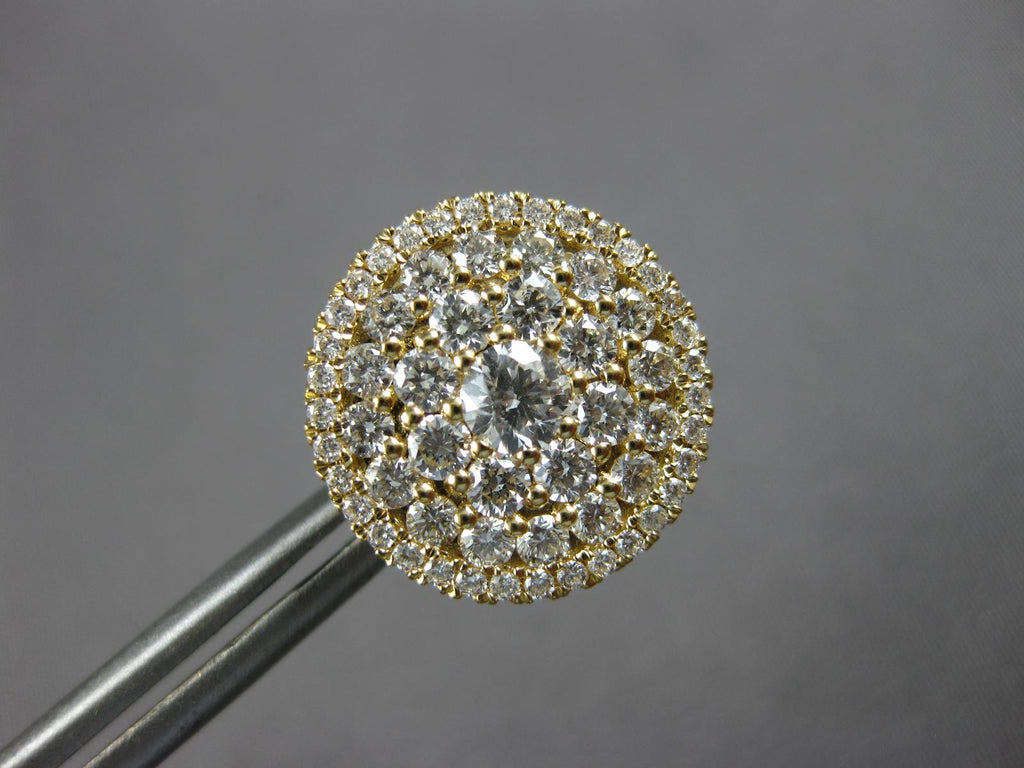 ESTATE LARGE 1.82CT DIAMOND 18K YELLOW GOLD 3D CLUSTER HALO FLOWER STUD EARRINGS
