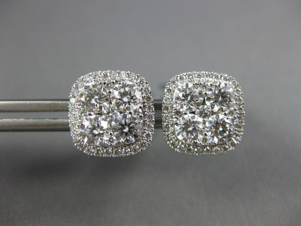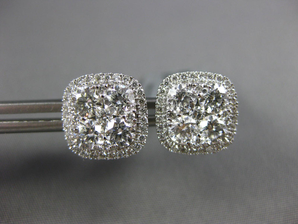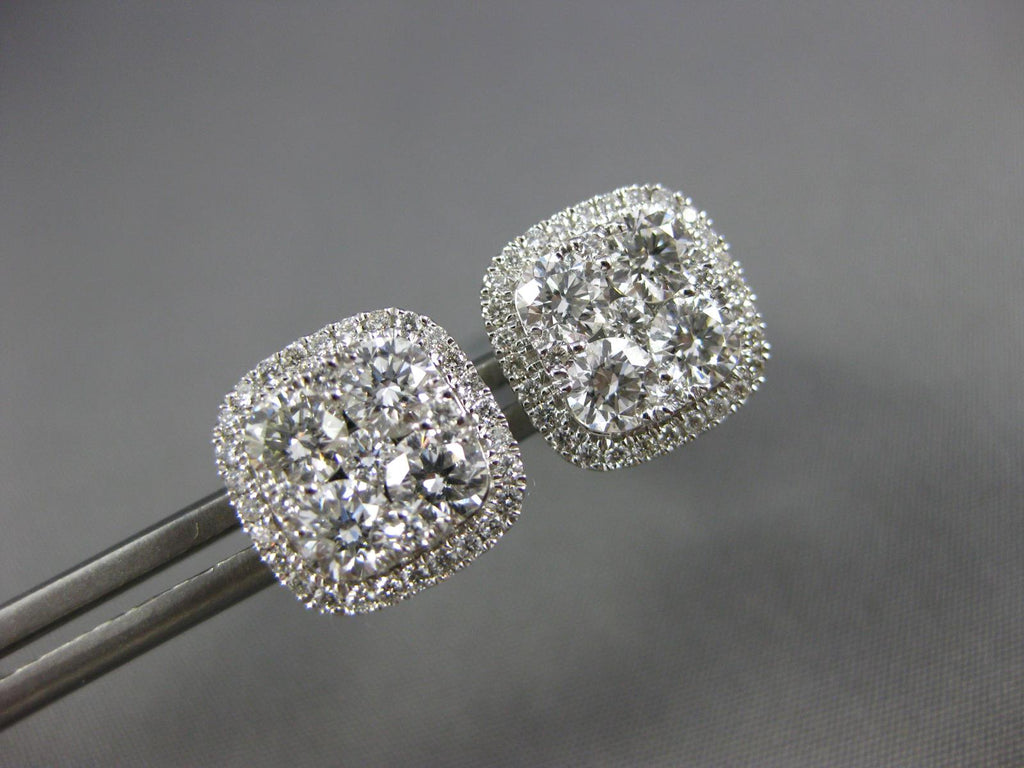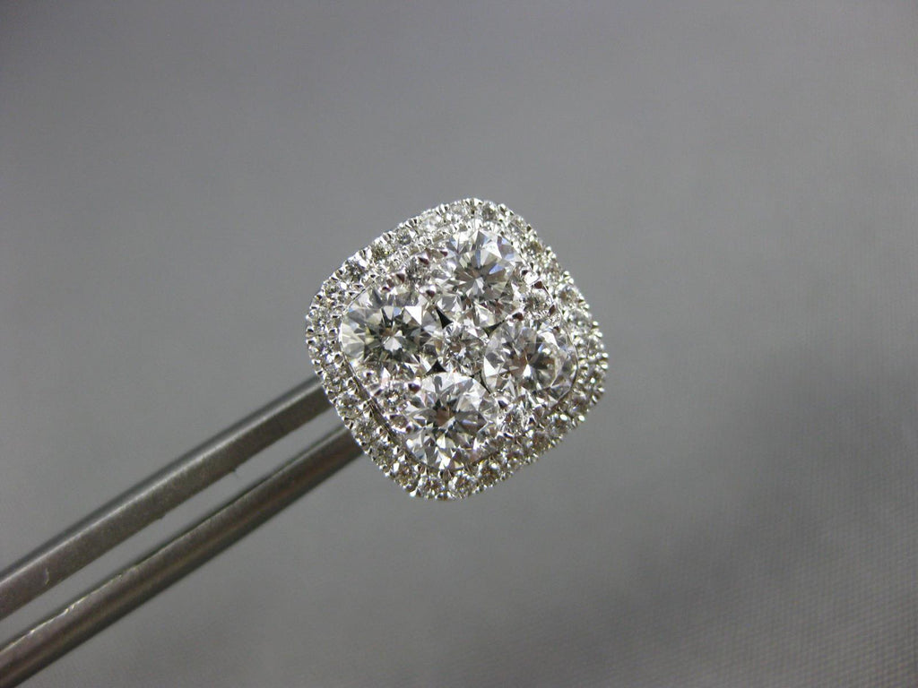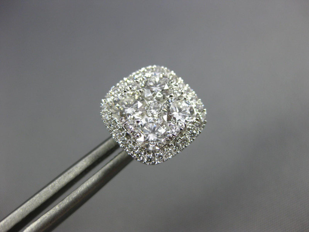ESTATE LARGE 1.83CT DIAMOND 18KT WHITE GOLD 3D CLUSTER SQUARE HALO STUD EARRINGS