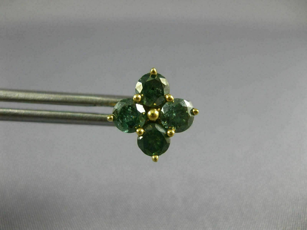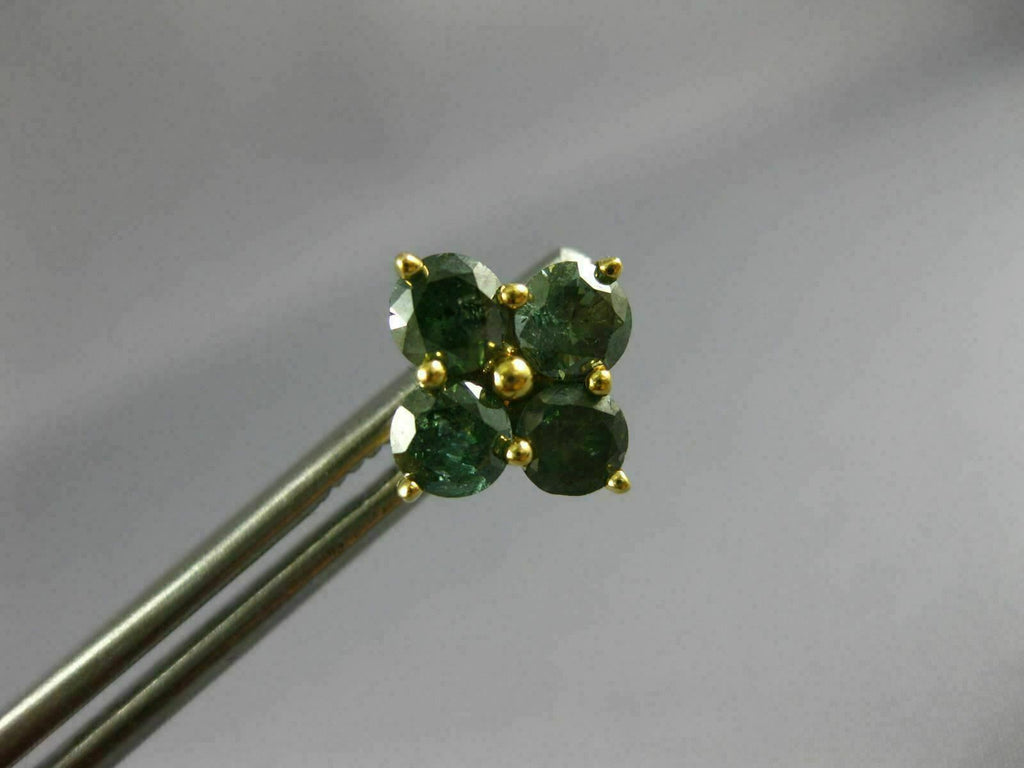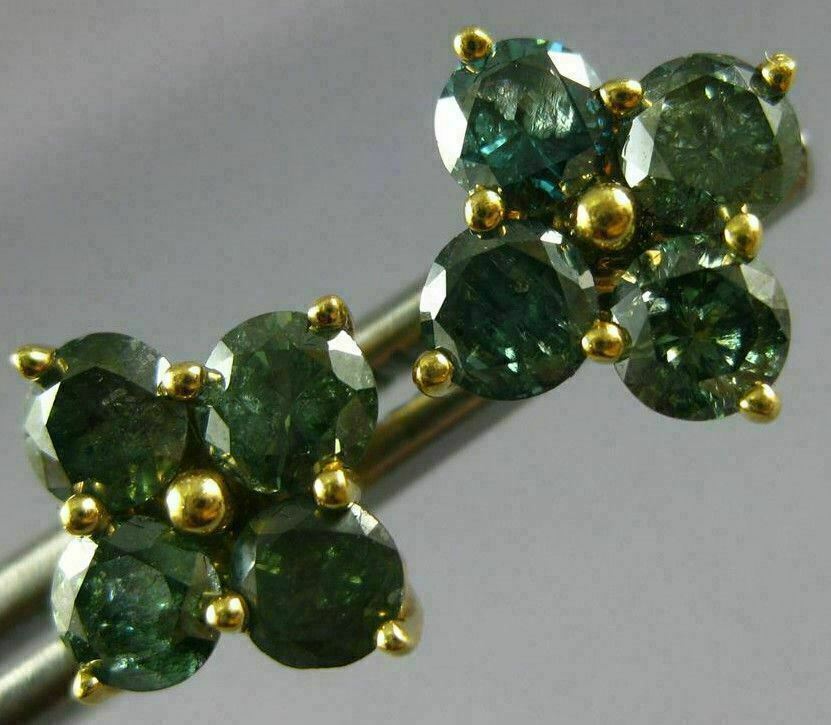 ESTATE LARGE 1.87CT BLUE DIAMOND 18KT YELLOW GOLD 3D FLOWER SQUARE STUD EARRINGS