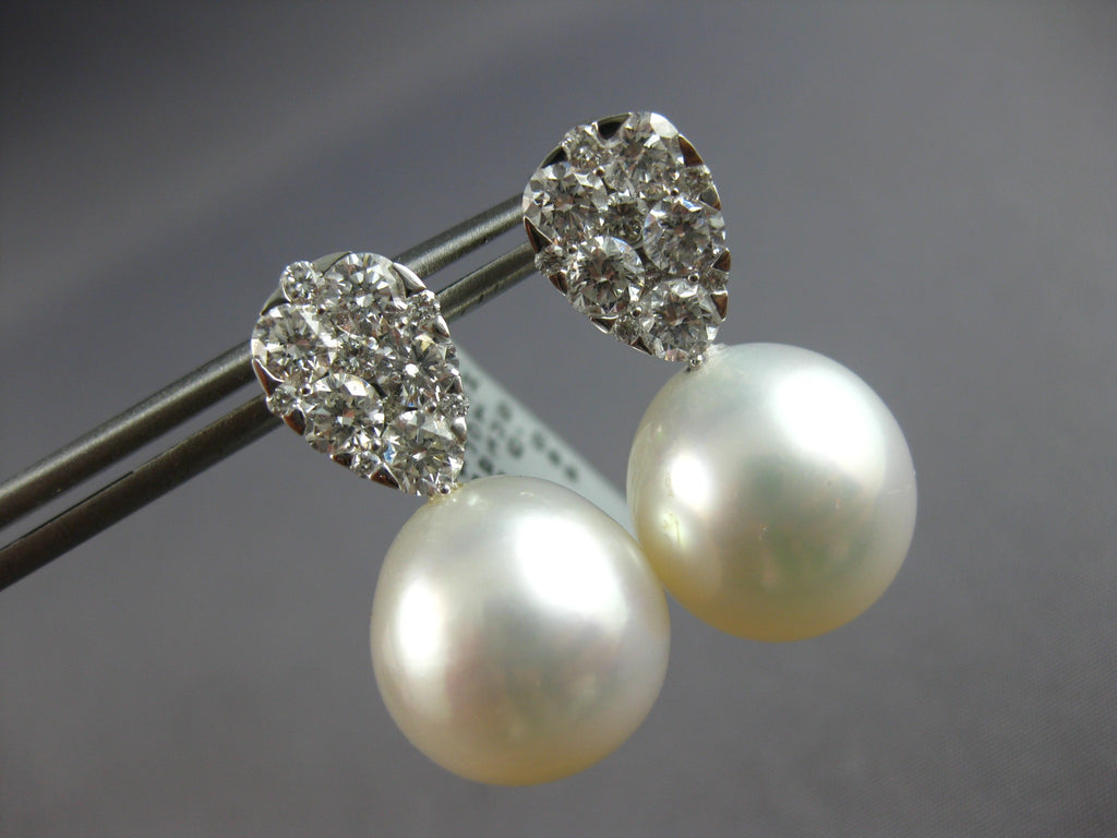 ESTATE LARGE 1.87CT DIAMOND & AAA SOUTH SEA PEARL 18KT WHITE GOLD 3D HANGING EARRINGS