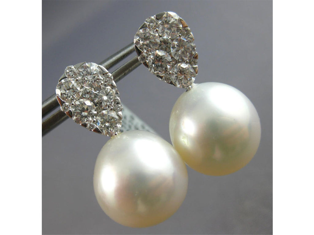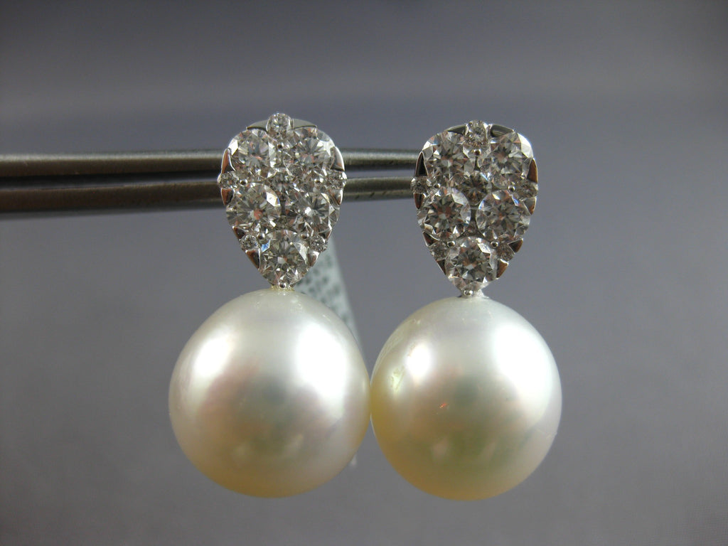 LARGEA 18KT WHITE GOLD HANGING EARRINGS. 3D INVISIBLE TEAR DROP DESIGN.A DIAMONDS ARE F/G COLOR, VSSI CLARITY 1.87 CARATS. FEATURES AAAA SOUTH SEA PEARL. PEARLSA MEASUREA 13.5mm WIDE.A EARRINGSA MEASURE 24.5mm X 13.5mm. WRITTEN APPRAISAL AVAILABLE. COMES IN A PRESENTABLE GIFT BOX.