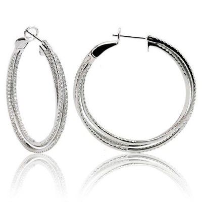 ESTATE LARGE 1.91CT DIAMOND 18KT WHITE GOLD CRISS CROSS INSIDE OUT HOOP EARRINGS