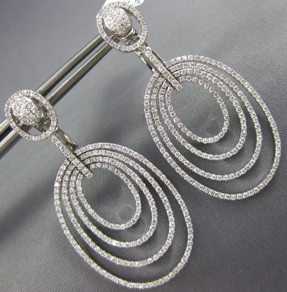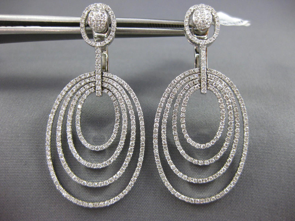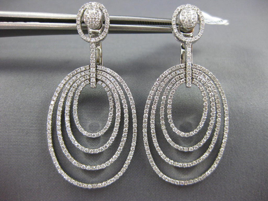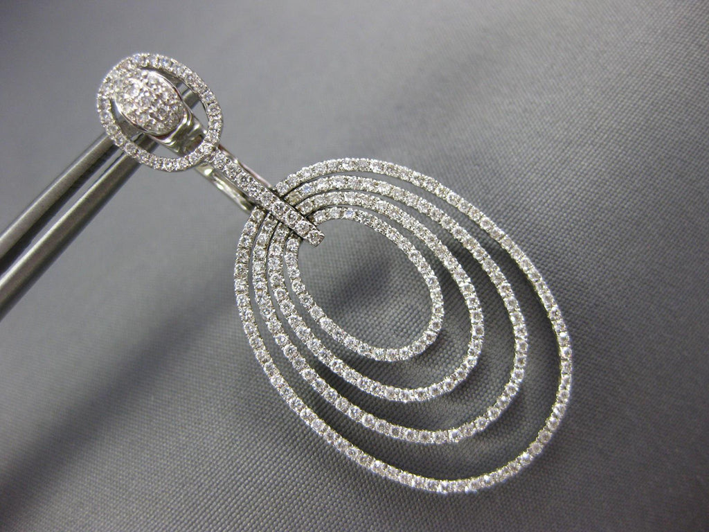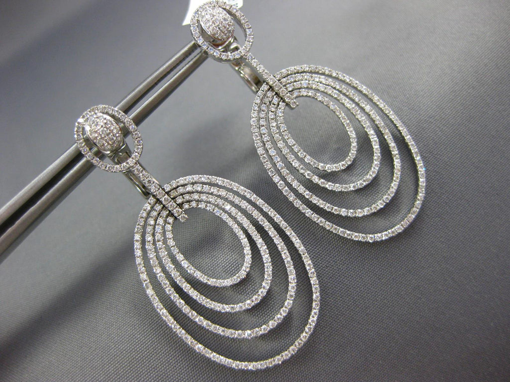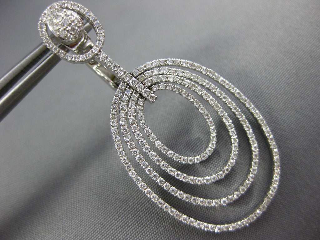 ESTATE LARGE 18KT WHITE GOLD CLIP ON HANGING EARRINGS. 3D MULTI OVAL DESIGN. DIAMONDS ARE F/G COLOR, VSSI CLARITY 1.93 CARATS. MEASURES 44mm X 20mm. WRITTEN APPRAISAL AVAILABLE. COMES IN A PRESENTABLE GIFT BOX.