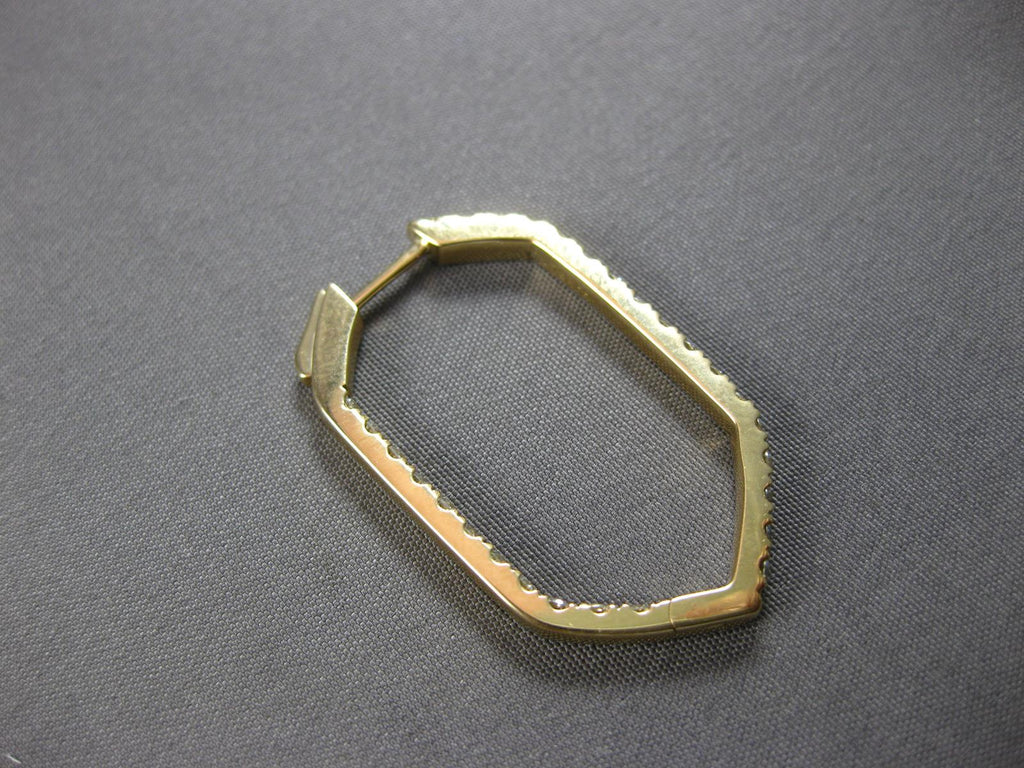 ESTATE LARGE 1.95CT DIAMOND 14KT YELLOW GOLD INSIDE OUT HEXAGON HOOP HANGING EARRINGS