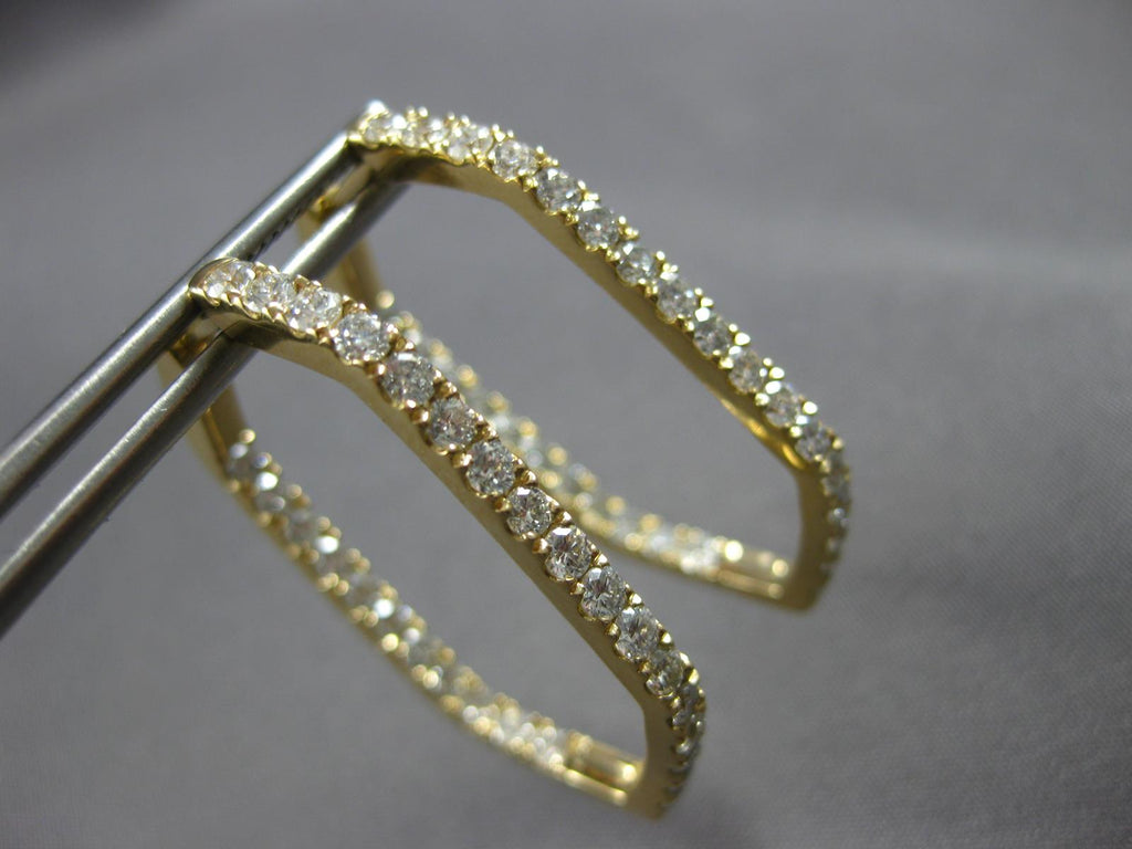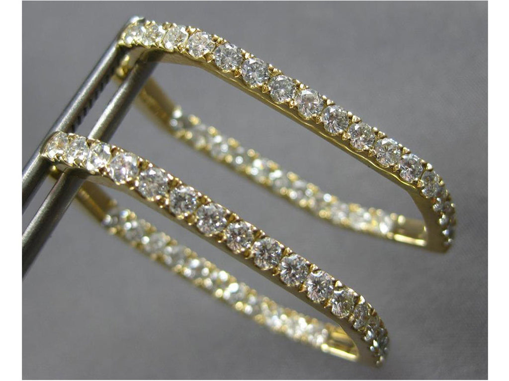 LARGE 14KT YELLOW GOLD HOOPA HANGINGA EARRINGS. 3D INSIDE OUT HEXAGONA DESIGN. DIAMONDS ARE F/G COLOR, VVS-VS CLARITY 1.95 CARATS.A MEASURES 33mm X 2.5mm. WRITTEN APPRAISAL AVAILABLE. COMES IN A PRESENTABLE GIFT BOX.