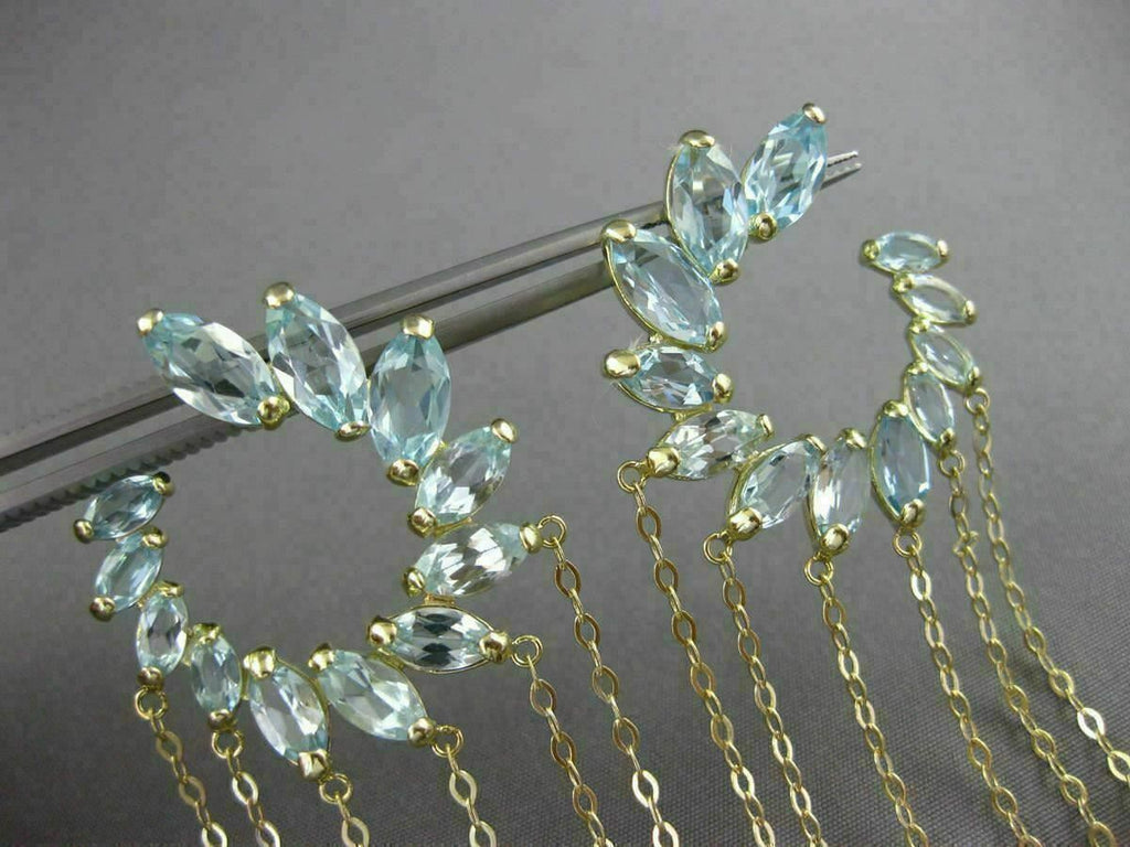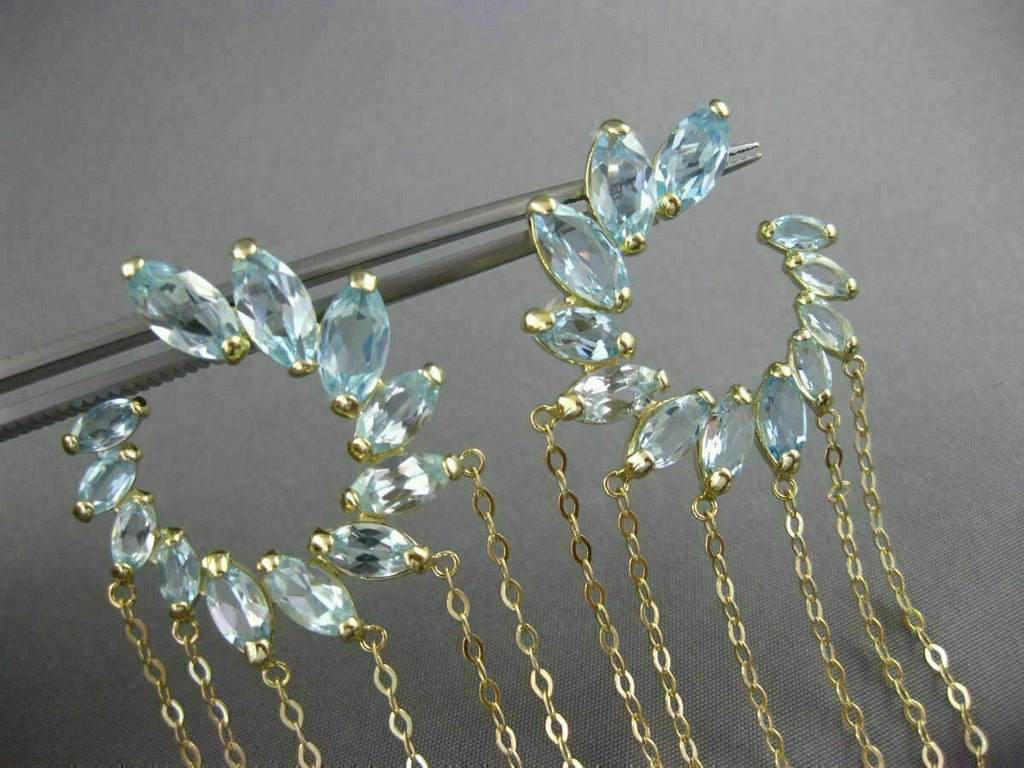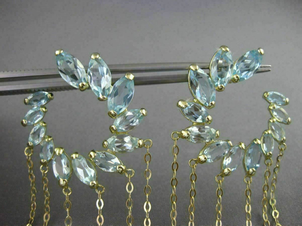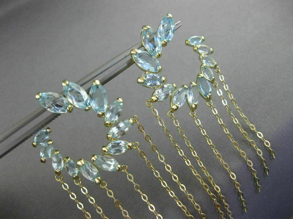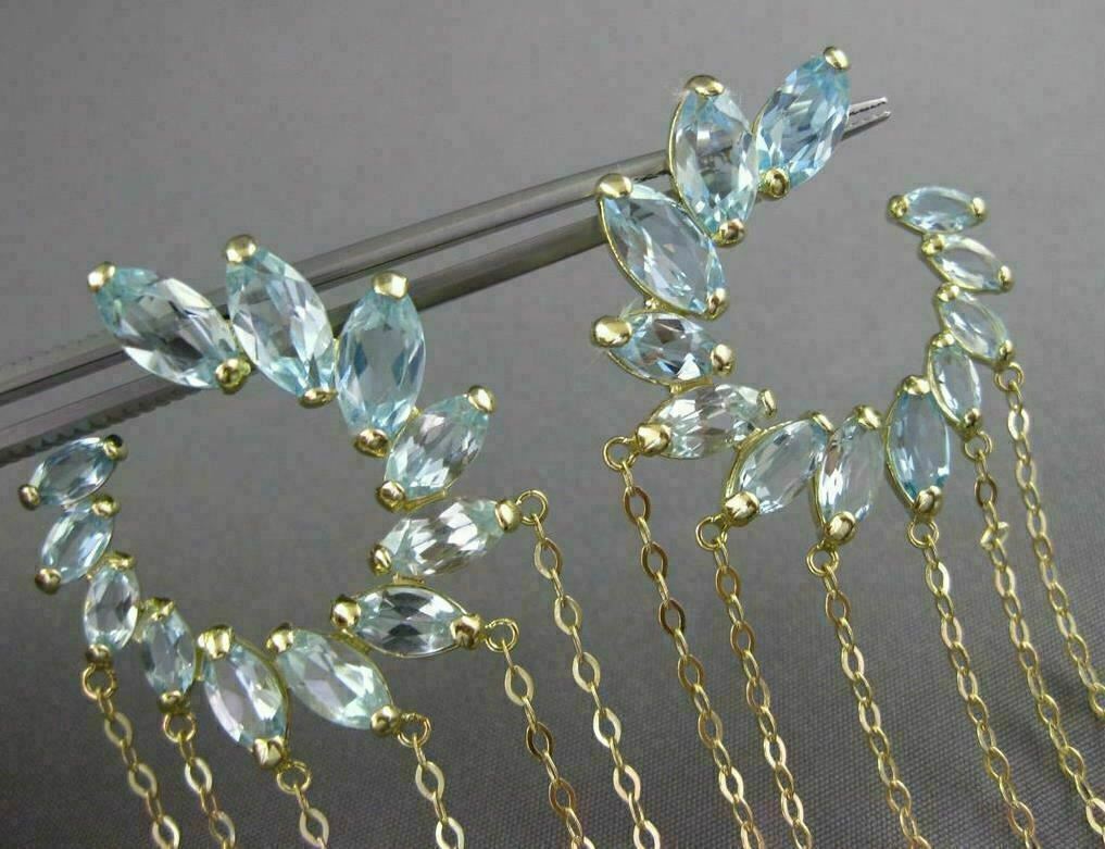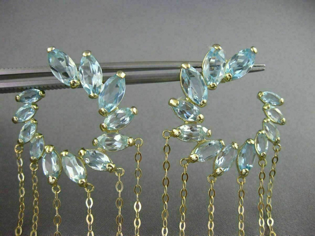 ESTATE LARGE 10CT AAA BLUE TOPAZ 14K YELLOW GOLD FLOWER JOURNEY HANGING EARRINGS